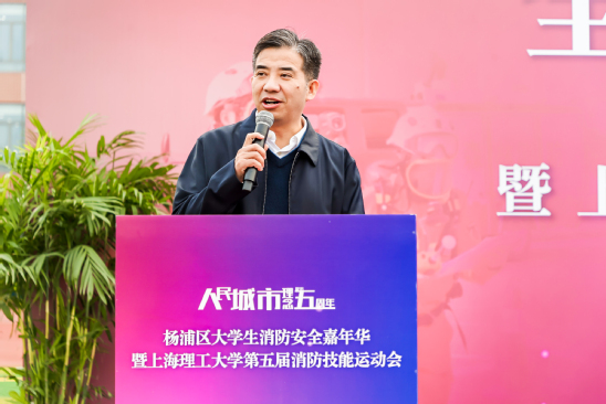 岳海洋在致辞中对上海市消防救援局、杨浦消防救援支队和市教委后保处长期以来对我校消防安全工作的支持和指导表示感谢,向各高校代表队表示热烈欢迎。他强调,消防安全事关广大师生的生命财产安全和学校事业高质量发展,学校党委高度重视,制定管理制度、狠抓安全责任落实,强化安全培训、宣传和风险隐患排查及应急处置预案演练,确保安全生产各项工作稳步推进。最后,他就如何进一步抓好学校安全生产工作提出要求。