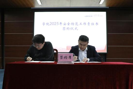 随后,学院举行2025年安全责任书签约仪式。常务副院长张大伟代表学院与系、团队实验室安全负责人代表进行签约,进一步明确安全责任,强化安全管理意识。安全工作是学院发展的基石,全体教职工都要将安全理念贯穿到日常工作每一个环节,确保教学、科研等各项工作在安全稳定的环境中顺利开展。