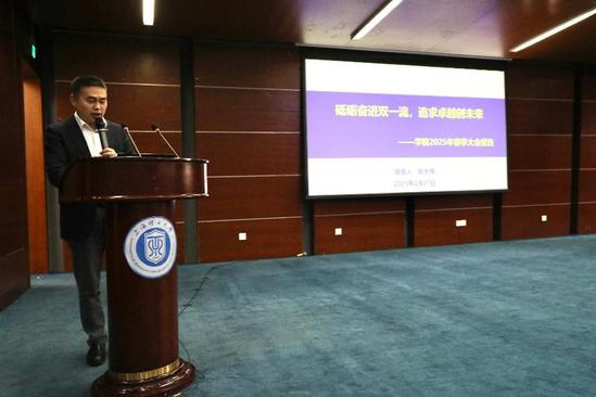 张大伟全面回顾总结了学院2024年事业发展情况,并对2025年重点工作进行了系统部署。他指出,学院要牢牢把握高校综合改革的战略机遇,以全力培育“一流学科”为学院工作中心,坚持以师生为本,增强优势学科集群实力、深化人事制度改革、强化人才培养特色、推动重大突破性成果产出,培养适应新时代要求的高素质创新型人才,提升学院综合竞争力,推动学院高质量跨越式发展。