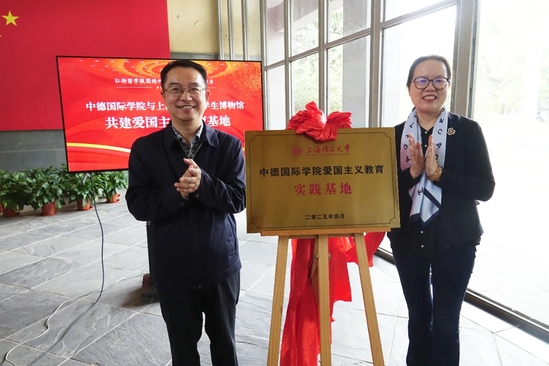 中德国际学院党委书记范正飞在致辞中指出,习近平总书记2014年给全体在德留学人员回信,勉励他们早日用所学所得报效祖国和人民,中德学院仔细学习讲话精神,为学院立德树人工作指明了方向。上海中国留学生博物馆记录了一代代中国留学生的奋斗足迹,是学院爱国主义教育的鲜活教材。共建活动将以资源共享、活动共办、精神共传为目标,为培养兼具国际视野和家国情怀的时代新人贡献力量。上海中国留学生博物馆执行馆长李欣欣在致辞中指出,一部百年中国留学史,就是一部推动中国近现代化发愤图强的奋斗史。中德国际学院爱国主义教育实践基地在留博馆设立后,将以爱国主义为引领,共筑青年使命担当。