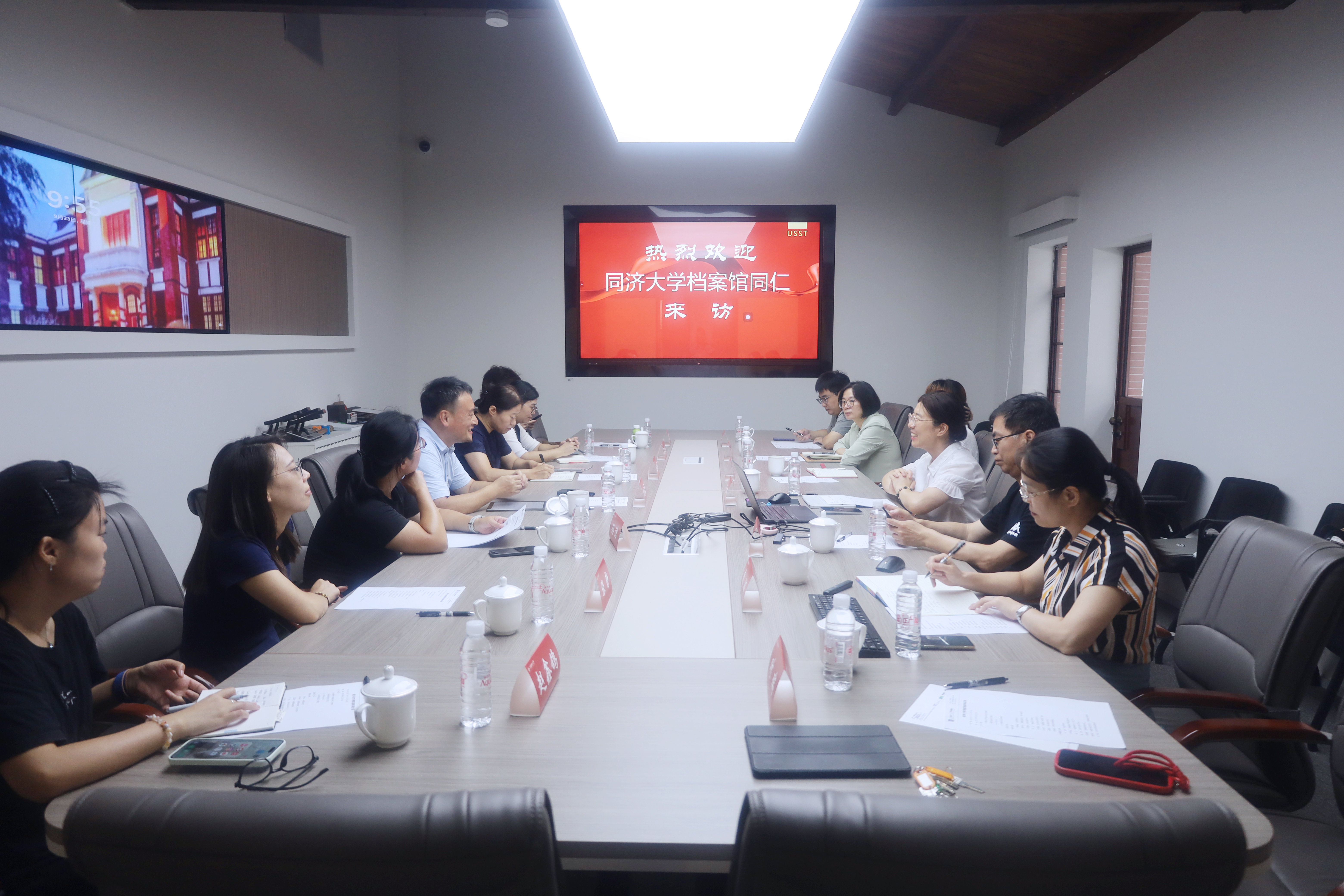 9月23日上午,同济大学档案馆馆长邹晓磊、副馆长王晶晶及档案馆相关科室人员等一行7人到我校复兴路校区调研档案校史工作。档案馆馆长孔娜、副研究馆员吴禹星等参加接待并座谈。座谈会由孔娜主持。