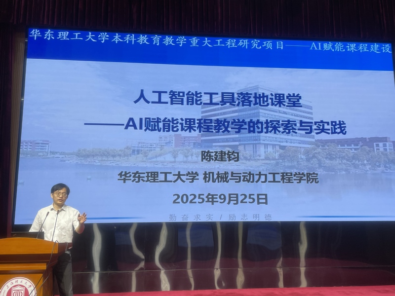 秋意盎然,群贤毕至。9月25日下午,健康学院主办的“AI赋能教育教学改革”专题会议在国和楼三楼报告厅成功举行。会议特邀华东理工大学信息科学与工程学院副院长谭帅教授、上海海事大学经济管理学院副院长肖光年教授、上海第二工业大学教务处处长夏妍春教授及华东理工大学机械与动力工程学院副院长陈建钧教授等四位资深专家作专题报告。学院党政领导、本科专业负责人、全院教师及教务办工作人员齐聚一堂,共同探讨人工智能时代教育教学改革的新路径。会议由健康学院副院长崔海坡主持。