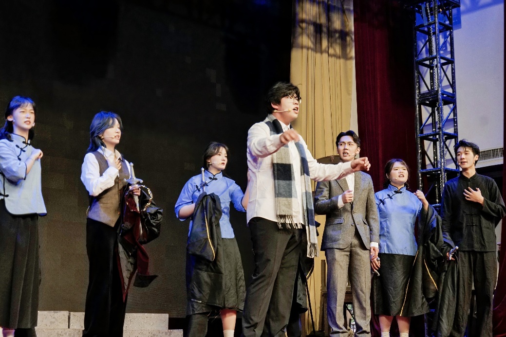 今年,上海理工大学2部短剧获中国科协“2025年科学家故事舞台剧推广行动”展演剧目。由研工部、组织部指导,光电学院研究生会演出的短剧《追随光·成为光》,以庄松林院士为原型创作,展现了科学工作者追寻真理、点亮希望的崇高追求;由校团委指导,大学生艺术团演出的短剧《追·星》,致敬袁隆平、樊锦诗、屠呦呦、钱学森等科学巨匠,再现他们心怀家国、璀璨如星的精神光芒。在校庆展演中,亦获得观众的好评。