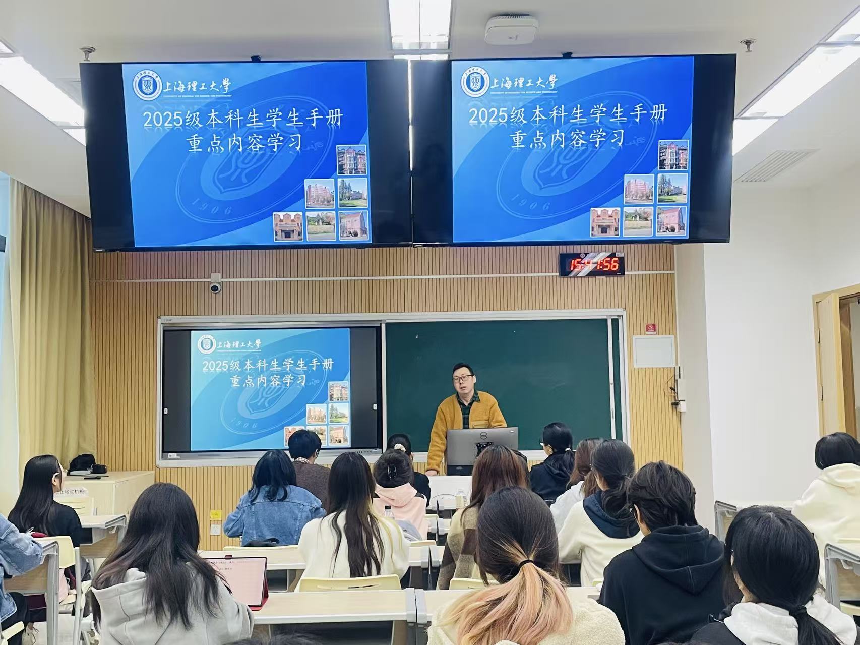 为帮助2025级新生尽快适应大学生活、明确发展方向,10月28日,上海理工大学出版学院面向全体大一新生班委在卓越楼123室开展培训会。本次培训由设计学类辅导员牛光辉和新闻传播学类辅导员闫五一主讲,围绕“新生主题教育实施方案”与“本科生学生手册重点内容”进行深入讲解,为新学期的班级建设与学生管理打下坚实基础。