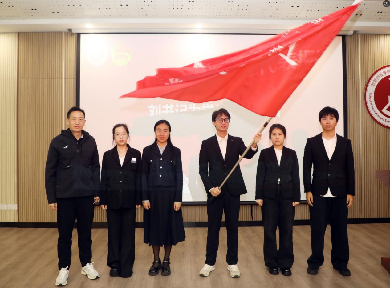 刘德强为出征代表授旗,勉励各团队在国赛舞台上充分展现上理学子勇于创新、追求卓越的精神风貌,力争取得优异成绩。