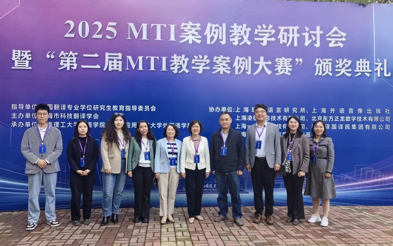 11月1日,2025MTI案例教学研讨会暨“第二届MTI教学案例大赛”颁奖典礼在上海应用技术大学奉贤校区顺利举行。本次会议由全国翻译专业学位研究生教育指导委员会指导,上海市科技翻译学会主办,我校外语学院、上海应用技术大学外国语学院承办。来自全国百余所高校的专家学者、行业代表及教师学生共200余人齐聚一堂,共同探讨AI时代翻译硕士教育的创新与发展。我校外语学院院长、上海市科技翻译学会副理事长刘芹主持“MTI口译组”平行论坛和大会闭幕式。外语学院副院长韩戈玲、MTI教育中心主任王勇、MTI教育中心副主任毛伟等获奖代表参会。