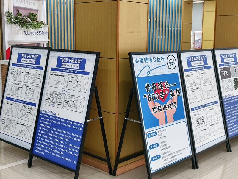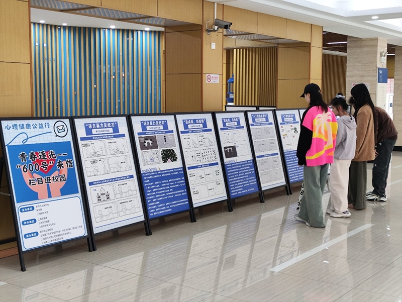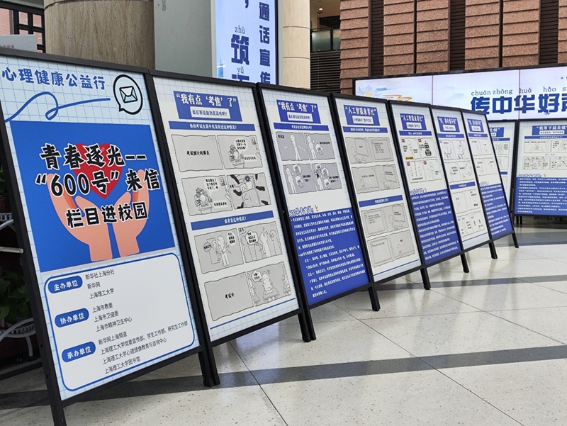 11月7日,“青春逐光——《‘600号’来信》栏目进校园”图片展走进上海理工大学,在复兴路校区教学楼与军工路校区湛恩纪念图书馆同步展出。活动通过漫画、文字与心理学知识相结合的形式,引导大学生以轻松、生动的方式关注心理健康,呵护心灵成长。