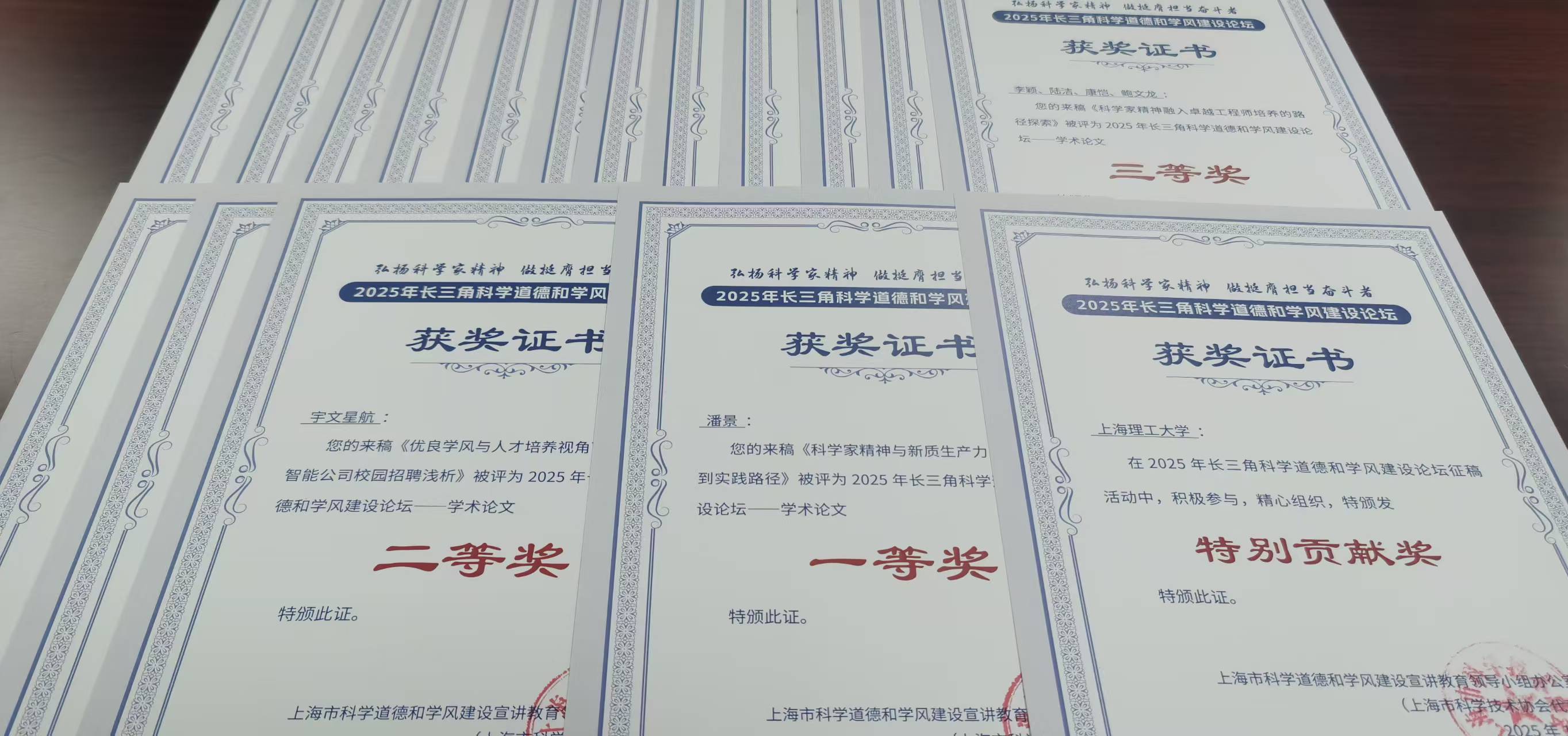 上海理工大学一直立足于时代责任和历史使命,将科学道德与学风建设落实到求学、教学和治学全过程。在长三角科学道德与学风建设论坛评选活动中再创佳绩,展现了我校在弘扬科学家精神、涵养优良学风方面的扎实工作与初步成效。未来,学校将坚持立德树人、厚植爱国情怀、突出价值引领,引导师生在崇德向善中勇于创新、坚持理性,恪守学术道德,强化底线意识,勇攀学术高峰,共同书写以科学家精神培育时代新人的新篇章。