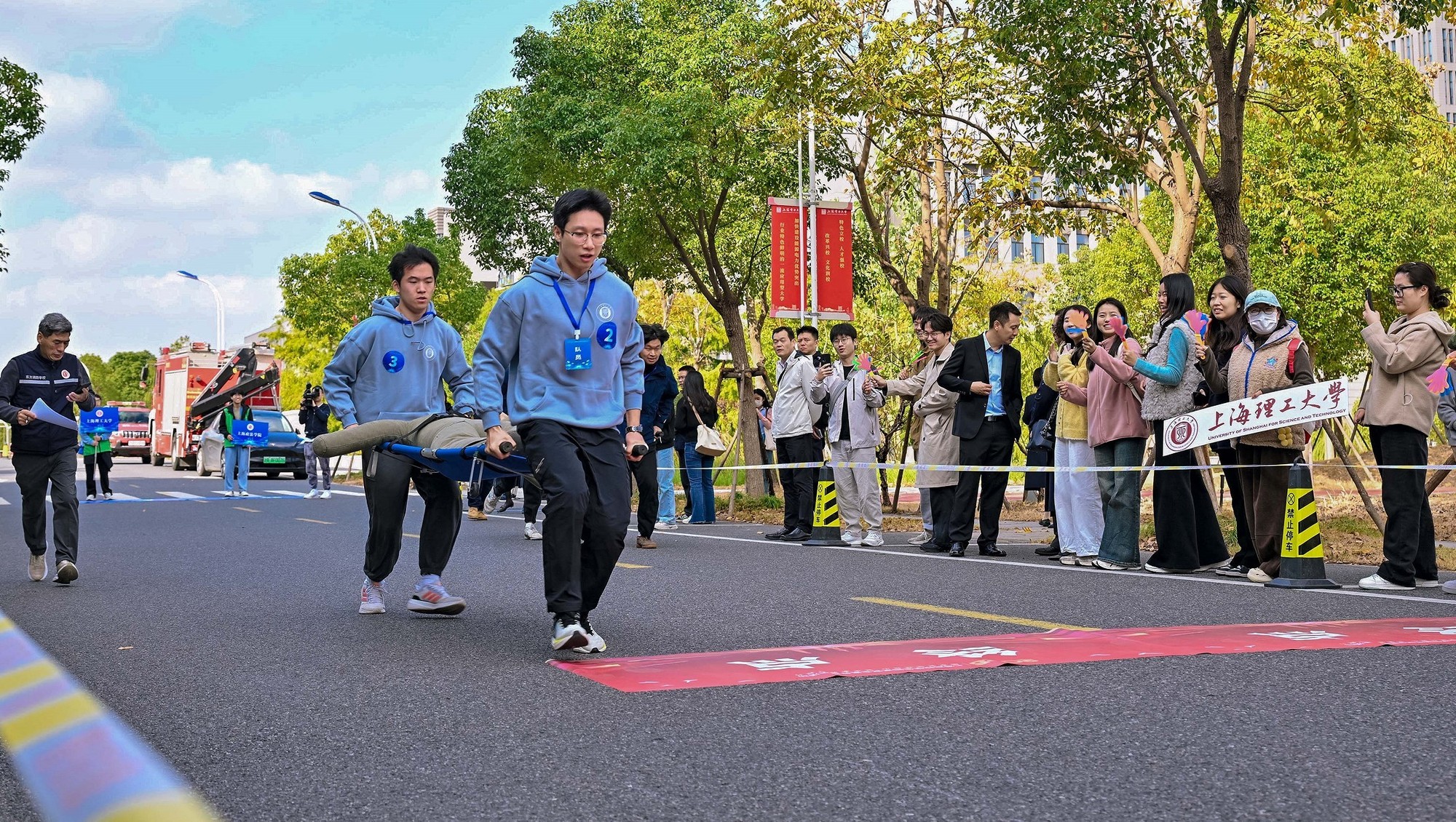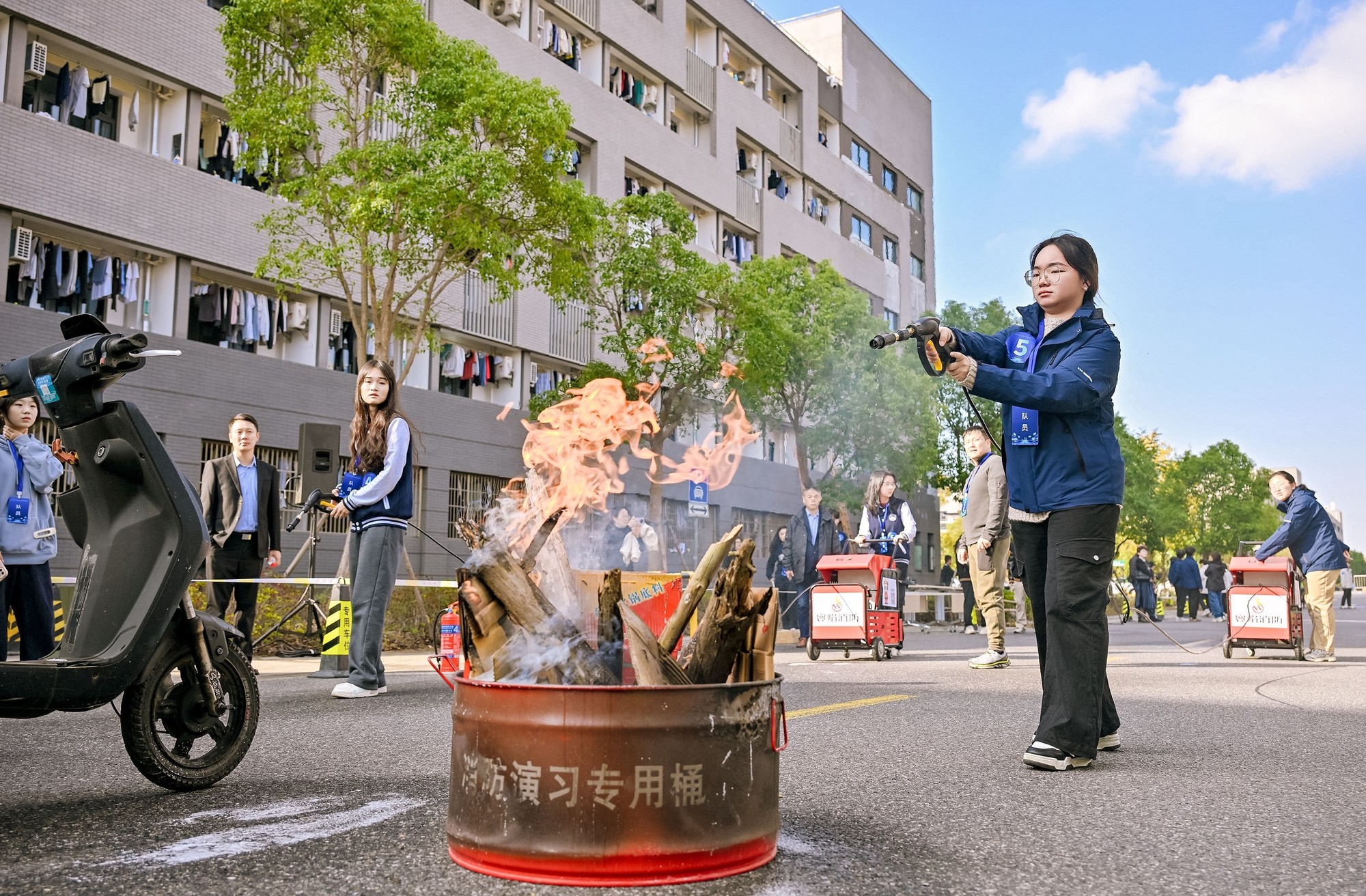 上午的技能操作展示设置四个实战项目:“固守待援”“云梯逃生”“担架转运”和“电动自行车火灾扑救”,重点考察学生的应急反应和团队协作能力。下午的理论竞答包含七个环节,从多角度检验学生对国家安全知识的理解与运用。