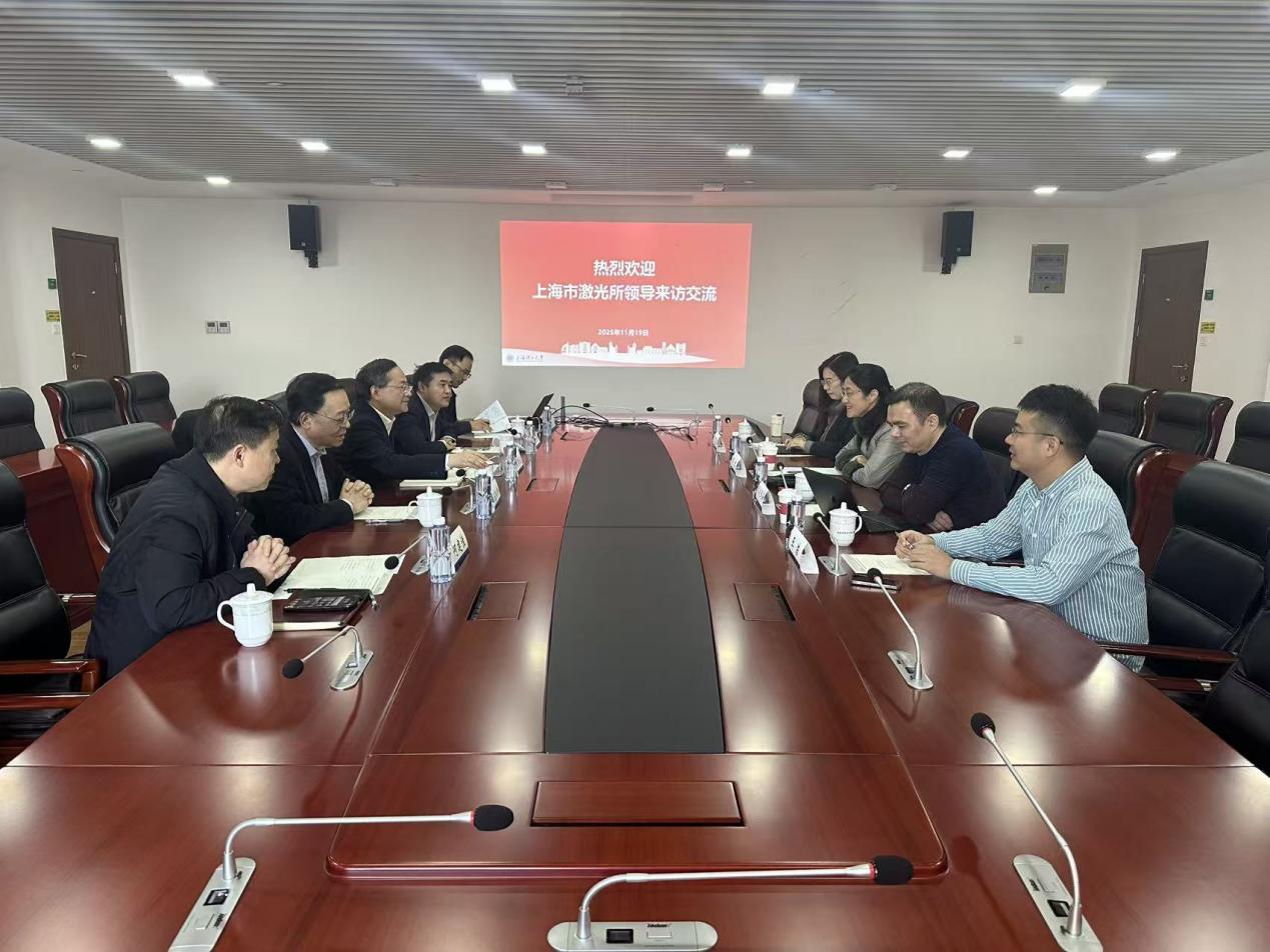 朱新远代表学校对上海市激光技术研究所有限公司一行的到来表示热烈欢迎。他强调,产学研深度融合对于培养新时代卓越工程师至关重要,应让学生“尽早”走进产业、感知一线,使人才培养紧密贴合市场需求,最终锻造出具备解决复杂实际问题能力的卓越工程师。希望双方以此次交流为契机,充分发挥各自优势,共同为服务国家创新驱动发展战略、助推上海全球科创中心建设贡献更大的力量。庄松林回顾了双方长期以来的良好合作,并对上海市激光技术研究所有限公司成立55年来所取得的卓越成就表示高度赞扬,对其在推动行业技术进步方面做出的贡献表示钦佩。张大伟就学院的整体发展、学科特色、科研优势以及人才培养成果等方面进行了系统介绍,为后续精准对接合作需求奠定了坚实基础。