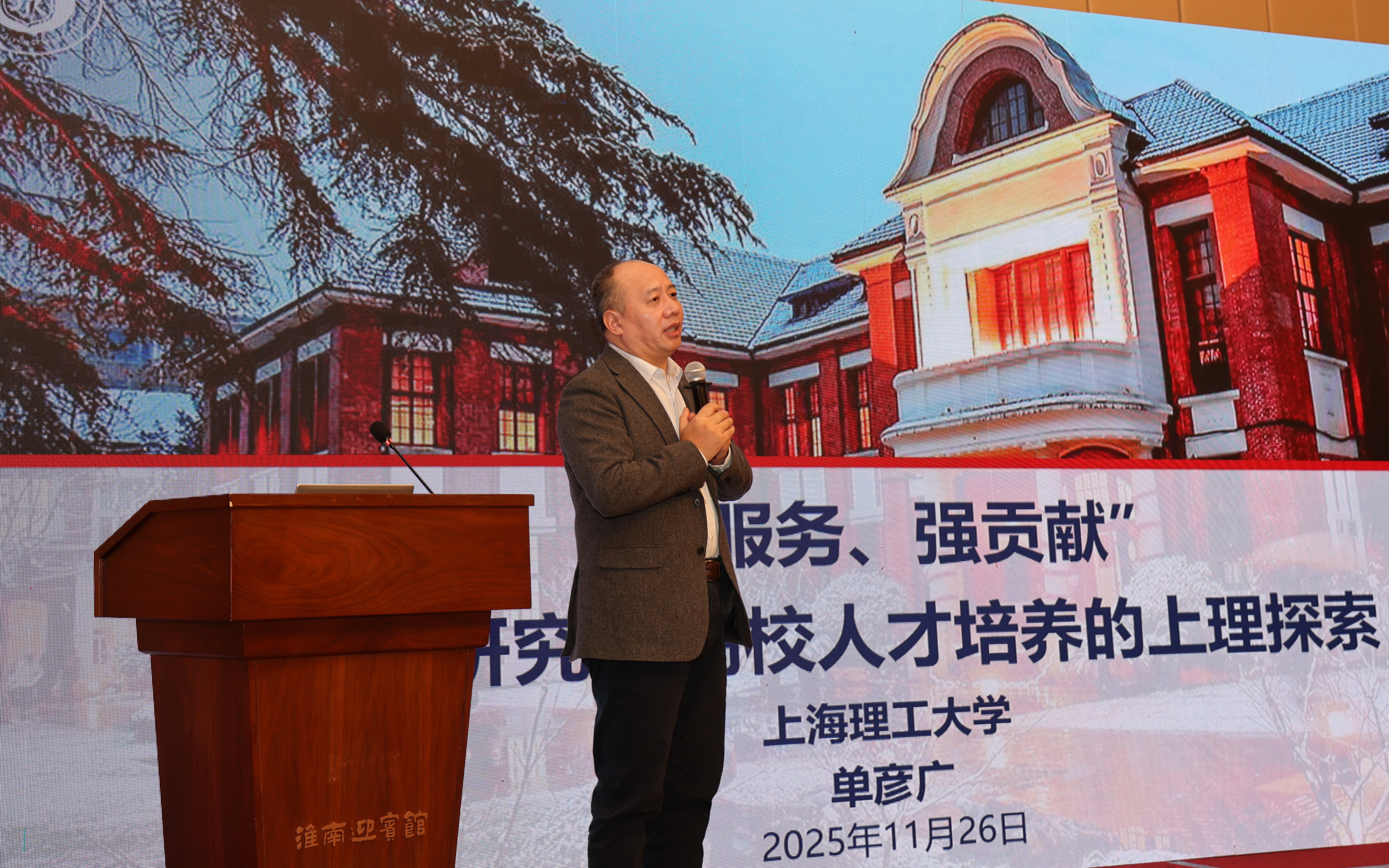 11月26日,安徽省应用型本科高校联盟主办的“十五五”学科专业优化与人才培养改革研讨会在淮南举行。应联盟邀请,学校教务处处长单彦广出席会议,并作题为《“重服务、强贡献”应用研究型高校人才培养的上理探索》的主旨报告。
