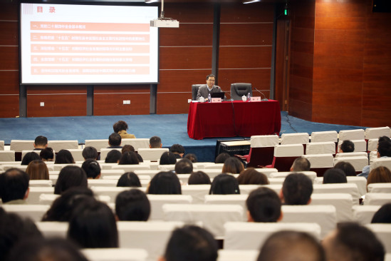 11月27日下午,机关党委邀请学校宣讲团成员、党委宣传部副部长、马克思主义学院副院长牛海为机关党员干部做党的二十届四中全会精神专题报告。本次专题学习旨在学习贯彻党的二十届四中全会精神,帮助机关党员干部学习领会全会精神的丰富内涵,加强服务型机关建设,为推动落实学校教育综合改革各项任务、推进学校事业高质量发展凝聚共识、凝聚智慧、凝聚力量。机关200余名党员干部参加。会议由机关党委书记孙红主持。