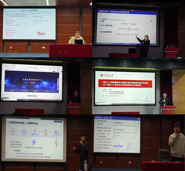 专题分享环节,南京大学钱超教授,同济大学冯恺睿研究员,中科曙光邓密海副经理,北京大学王斌教授,复旦大学王以恒、贠金虎博士研究生围绕跨学科研究、战略决策、算力支撑、论文发表等多个维度作报告。