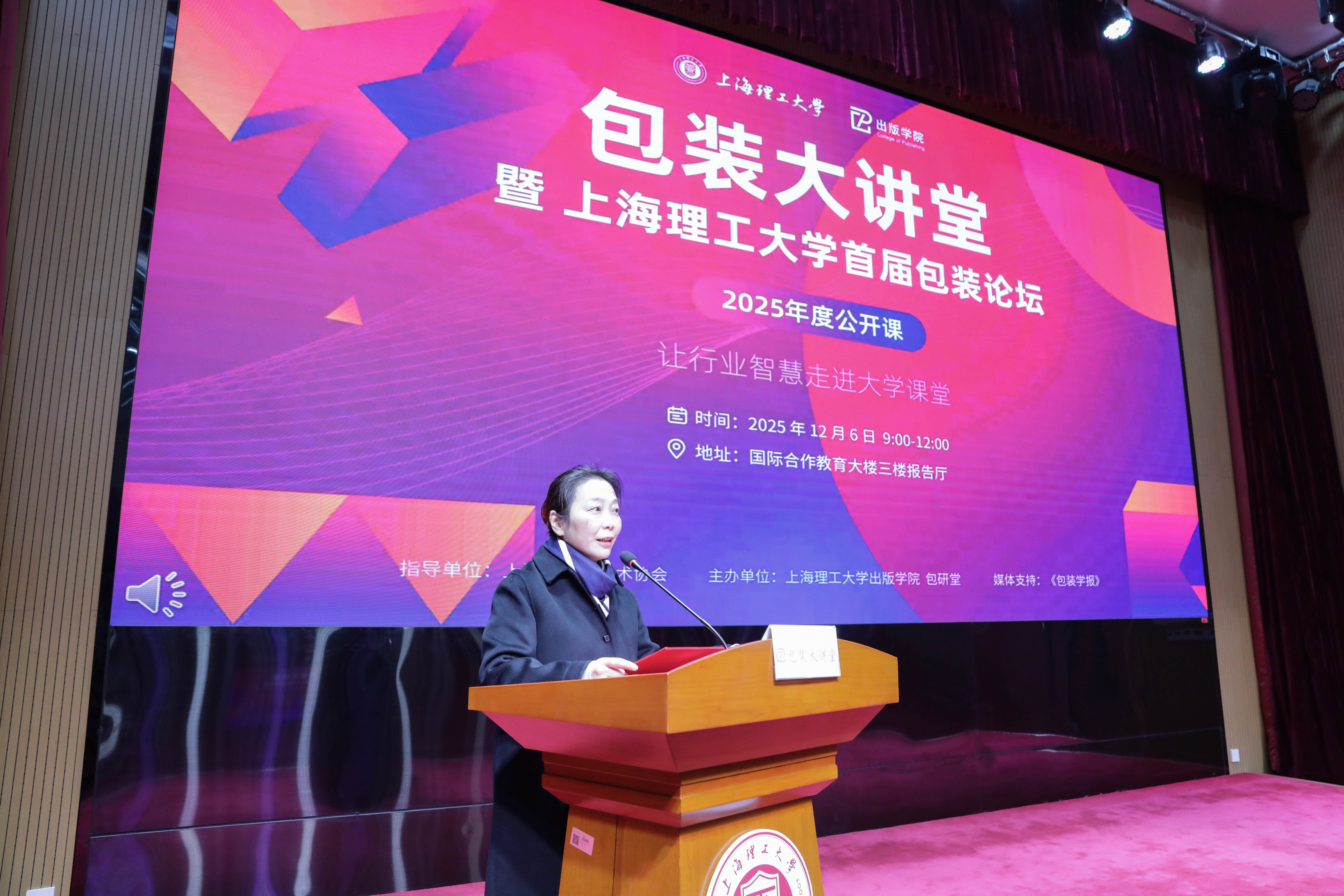 12月6日上午,上海理工大学出版学院举办“让行业智慧走进大学课堂”首届包装工程行业论坛。上海市包装技术协会、拜耳医药、自然堂集团、仙乐健康、希悦尔公司、盛通时代等知名企业代表以及上海理工大学优秀毕业生校友出席本次论坛。包装工程、包装设计专业近百名师生齐聚一堂,共话包装行业前沿趋势。
