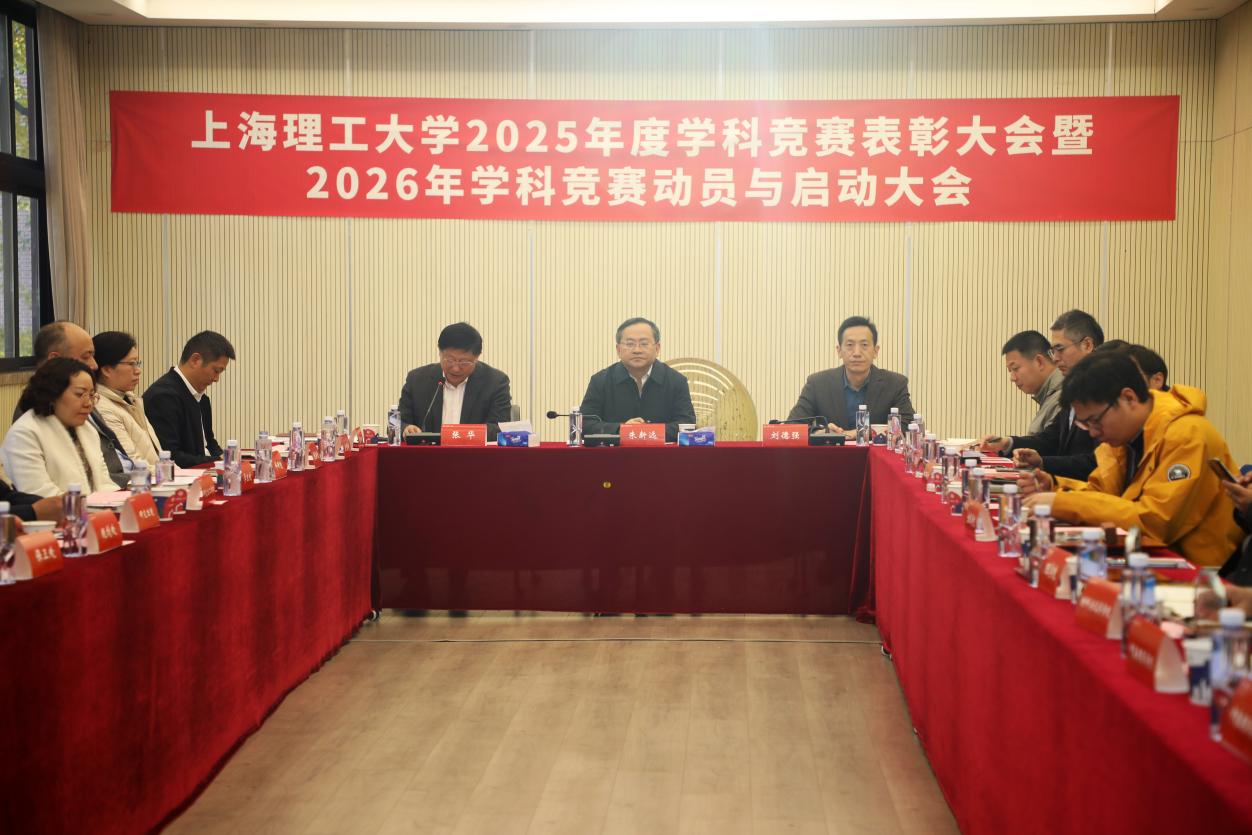 12月9日下午,上海理工大学在创新创业中心举行2025年度学科竞赛总结表彰大会暨2026年学科竞赛动员与启动大会。校长朱新远,校党委副书记、副校长刘德强,副校长张华,相关职能部门负责人、各学院(部)相关负责人、教师代表和学生代表齐聚一堂,共同回顾成果、表彰先进、交流经验、展望未来。大会由张华主持。