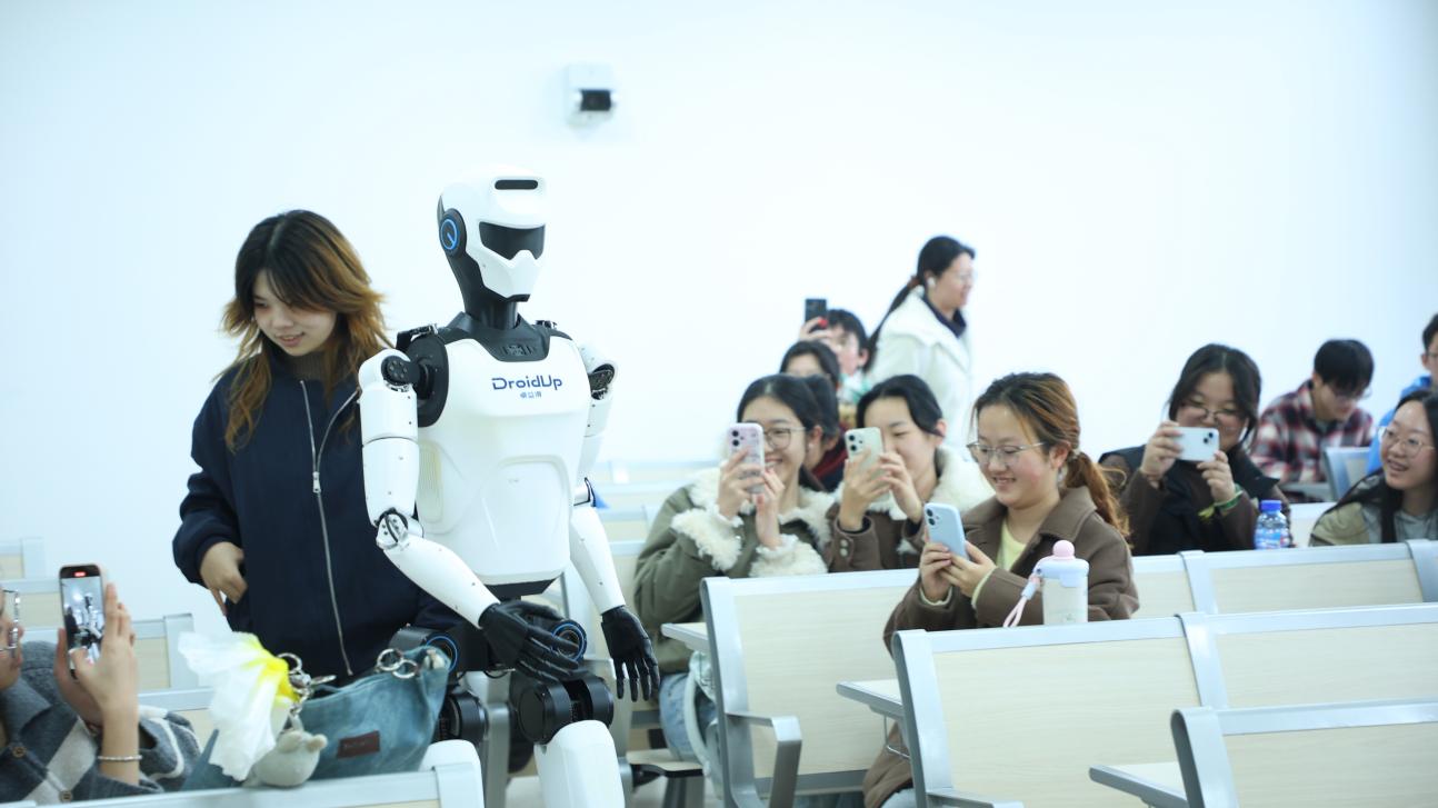 课堂上,学生们还获得了亲手操作机器人的机会。外语学院许同学兴奋地表示:“操作机器人的手柄就像玩PS游戏机一样顺手,但这背后却是我们平时接触不到的工程知识,既新奇又有趣!”出版学院陈同学则认为:“这是我最投入的一节课,互动性强、氛围活跃,专业内容和课堂形式结合得特别好。”