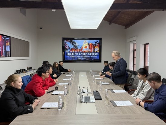 参访第一站,沪江学子来到复兴路校区具有百年历史的钟楼,即现在的上海理工大学复兴路校区校史馆。在馆内会议室,中英国际学院教师James Leggate作学院情况介绍,系统阐述了学院办学特色、独特课程体系,同时梳理分析“一对多”合作办学模式、创新人才培养理念以及计划内双学位项目的学习优势。在讲解与交流中,国际学生针对课程设置与学习体验积极提问,James均作了详细解答。一名汉语言生表示,James的讲解让他对在中英国际学院学习产生了浓厚兴趣。