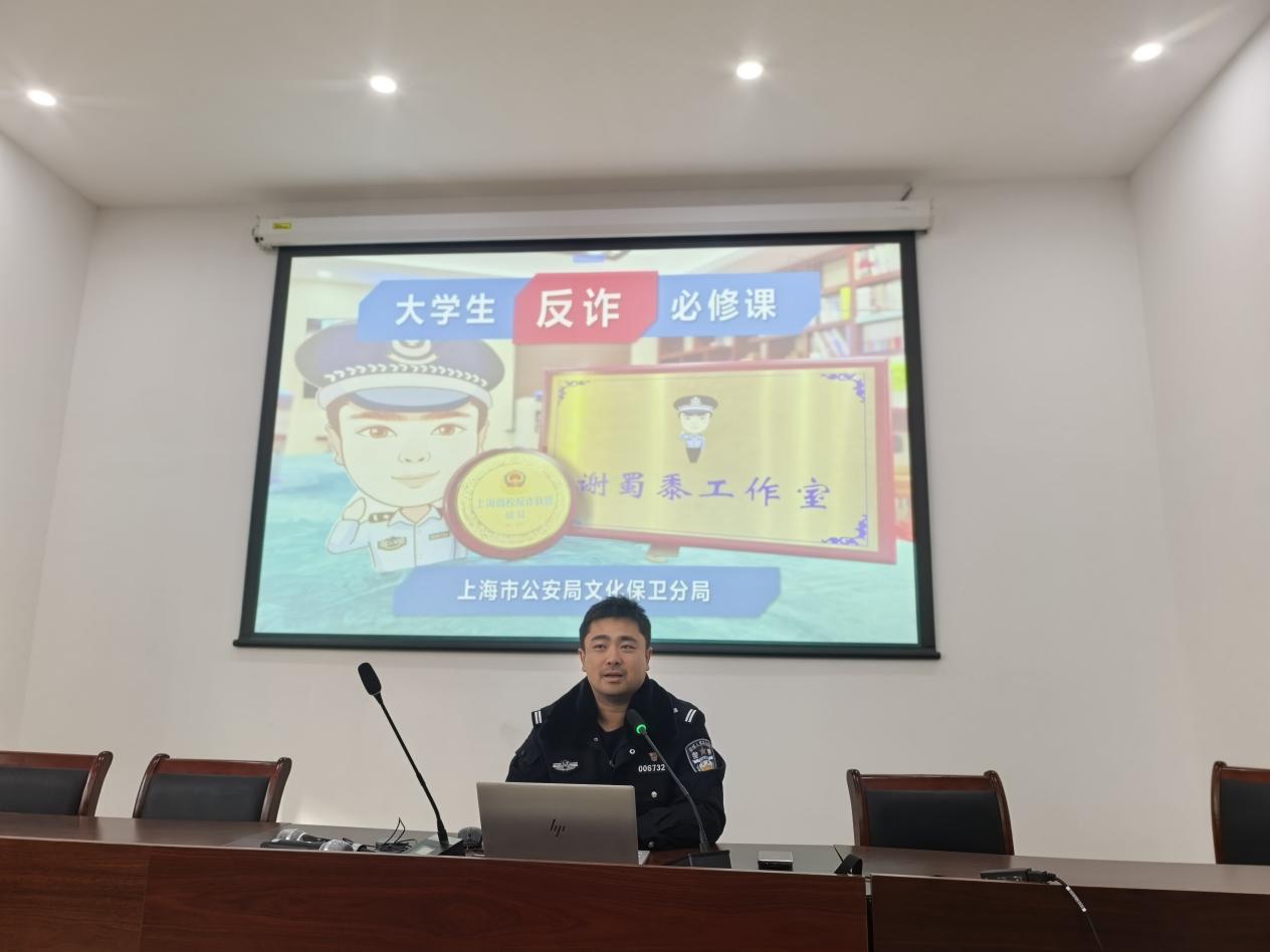上海市公安局文化保卫分局治安管理支队副支队长、高校反诈宣传品牌“上海高校反诈联盟”及“谢蜀黍工作室”负责人谢晔警官主讲,为外院学子带来一场生动、深刻、实用的防诈知识课。谢晔警官结合多年实战经验,以真实案例为切入点,深入剖析了针对大学生群体高发的兼职刷单、冒充客服、虚假交易、情感诈骗等骗局的作案手法与心理套路。他通过互动问答等方式,让同学们在沉浸体验中掌握“不听、不信、不转账”的核心要领,理解“天上不会掉馅饼”的防诈根本逻辑。现场气氛活跃,同学们纷纷表示收获颇丰,防骗能力得到切实提升。