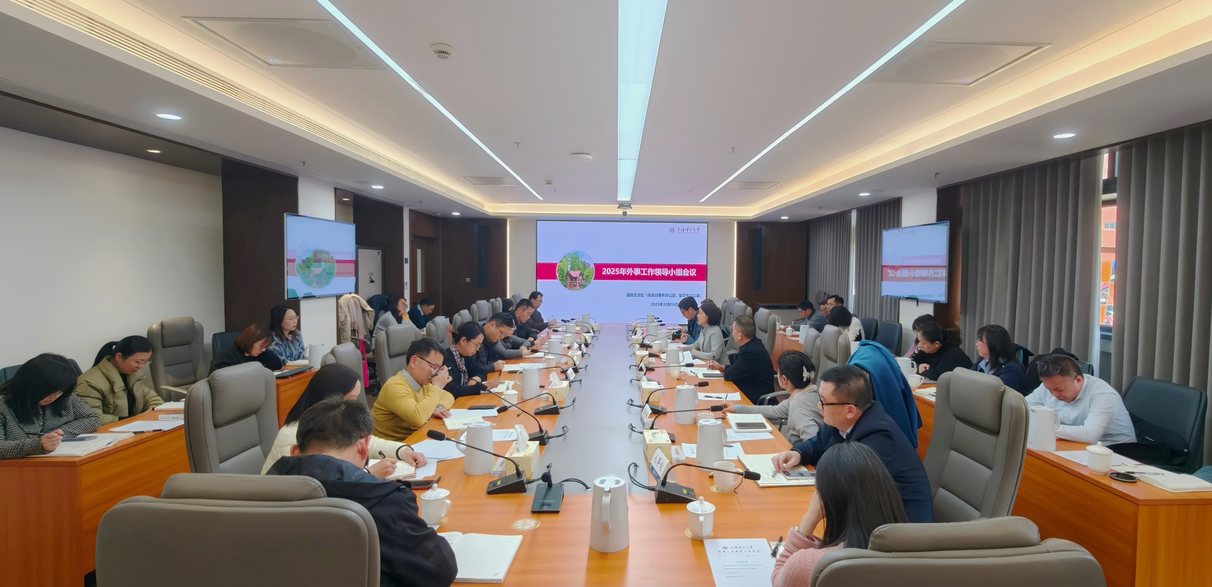 1216下午学校召开2025外事工作领导小组会议暨外事工作例会,学校外事工作领导小组成员单位、各二级学院外事工作负责人外事秘书分别参加了相关会议会议由副校长蔡永莲主持。