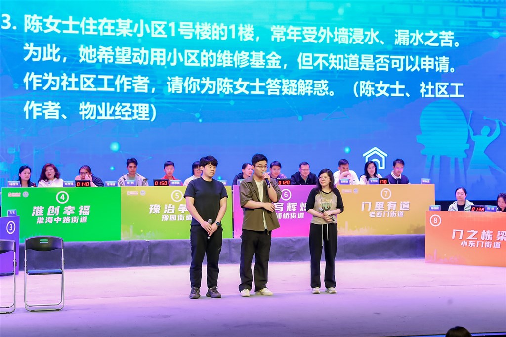 当天的区级复赛由必答题、抢答题、情景演绎三部分组成,重点考察选手的知识储备、快速反应能力和团队协作能力。每一个环节的设置都紧扣社区工作,让选手们充分展示他们的专业性与实战能力。