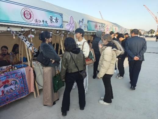 活动现场,国际生们精心布置的展示区域成为市集的一大亮点,吸引了市民游客的驻足围观与交流。为了更好地展示本国特色文化,国际生们提前精心筹备本国特色美食、传统服饰与手工艺品等,风味十足的美食承载着饮食文化传承,精巧服饰凝结着民族审美智慧,匠心手工艺品蕴含着地域民俗风情。展示过程中,国际生们不仅细致陈列展品,更主动上前热情讲解,从文化背景、历史渊源到制作工艺、民俗寓意,条理清晰地传递展品背后的文化内涵,让大家在直观感受多元文明魅力的同时,深度理解不同文化的独特价值。