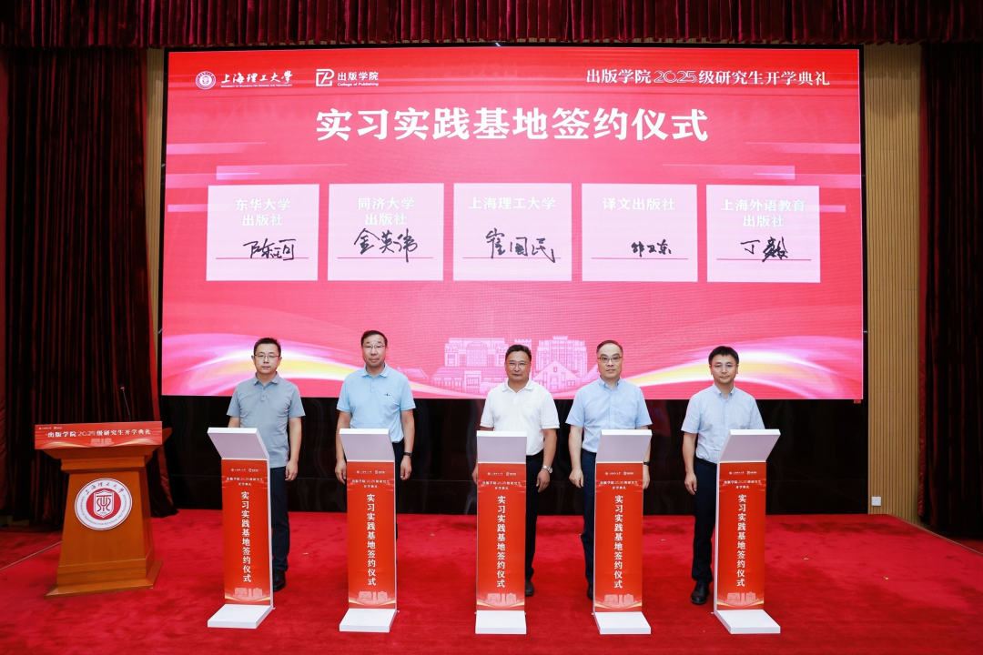 本科与硕士均就读于上理工出版学院的秦铭,也是学校“编辑出版学本科—出版硕士—出版博士”培养体系的首位贯通者。与她一同入学的19名出版专业博士研究生,分别来自计算机技术、管理学、设计学等不同学科领域,体现了上理工首届出版博士生“跨界融合”的特点。现场,学校与译文出版社、同济大学出版社、上海外语教育出版社、东华大学出版社、澎湃新闻等8家企事业单位签订人才联合培养协议,将通过共建实践基地、联合开发课程、双导师指导等模式共同赋能出版人才培养。