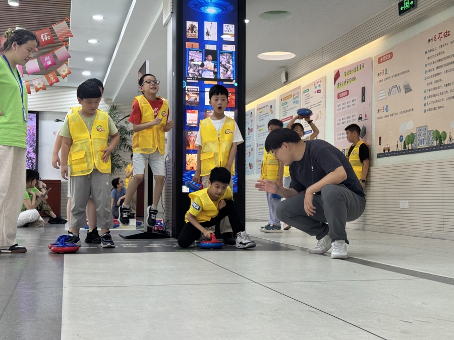 开班前,瑞金二路街道对暑托班全体工作人员开展了系统、专业的培训。在班主任的安排下,志愿者们认真做好全天候陪伴守护,下课期间定点值守,上课时则是坐在学员们身边的“小导师”。作为街道党建联建单位,七色花小学为本次办班提供了出色的硬件设施,学员们得以在学校宽敞明亮的教室、设施齐全的室内冰壶室等场地度过一个清凉、舒适的夏天;同时,依托七色花小学优质校本教育资源开设的“快乐冰壶”系列活动,也为学员们带来充满竞技乐趣的运动时光。