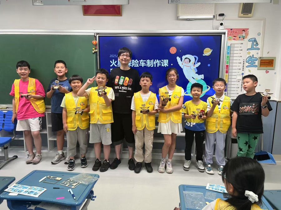开班首日,3场科创活动火热开展。来自上海理工大学中英国际学院上海市学生(青少年)科创教育基地的大学生们以“墨水的前世今生”为引,结合动手实验,在“硬核知识”与“天然色彩”的碰撞中,为小学员们带来一场别开生面的科创美育。在“火星车探险记”活动中,深奥的基础科学知识巧妙融入火星车拼装的各个环节,变得触手可及。在团队的精诚协作中,小学员们经历了一场妙趣横生的“火星漫游”,更在亲身探索中体会到可持续能源的独特优势。最后,小学员们置身一场云端“CITY WALK”,沉浸式感受南昌路这条“烟火气”小马路的建筑风格与街区低碳设计巧思,并用画笔定格自己眼中的“最美路口”。