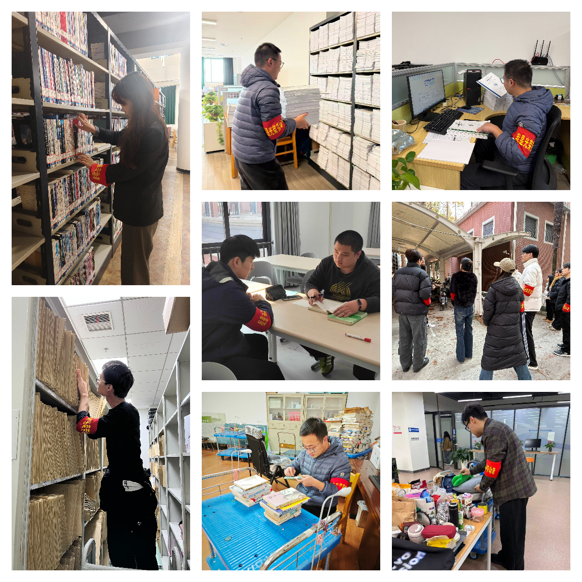 在图书馆,同学们化身“图书管理员”,为一排排书籍贴上整齐的标识;在公共实验中心,他们穿梭于各个实验室,归类仪器、清点试剂、核对数据;在保卫处,他们检查消防设施、引导车辆停放,亲身守护校园安全。据统计,本次活动累计服务时长近1000小时,其中朱晓宇、曹曙缘等同学的服务时长达60小时以上。
