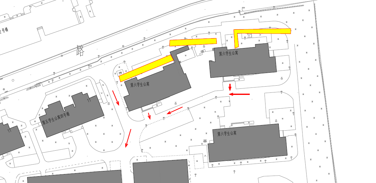 334号校区雨污分流改造工程封闭区域及交通路线图(第六学生公寓楼北侧)