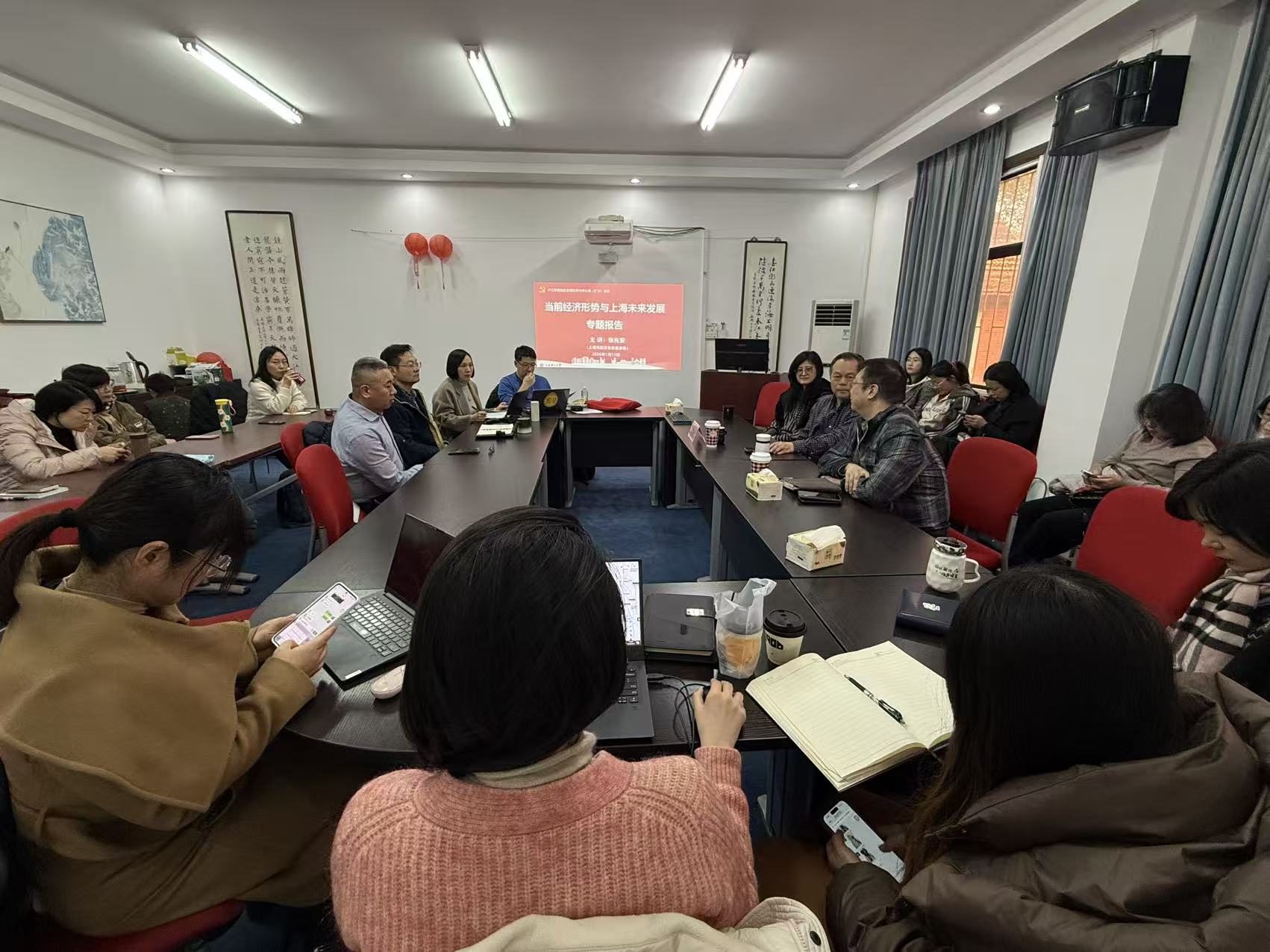 1月13日,沪江学院召开党总支理论学习中心组(扩大)会议,特别邀请上海市人民政府参事、上海社会科学院原副院长张兆安教授莅临会场,为全体党员作“当前经济形势与上海未来发展”专题学习报告。会议由学院副院长朱慧锋主持,学院全体教师出席。