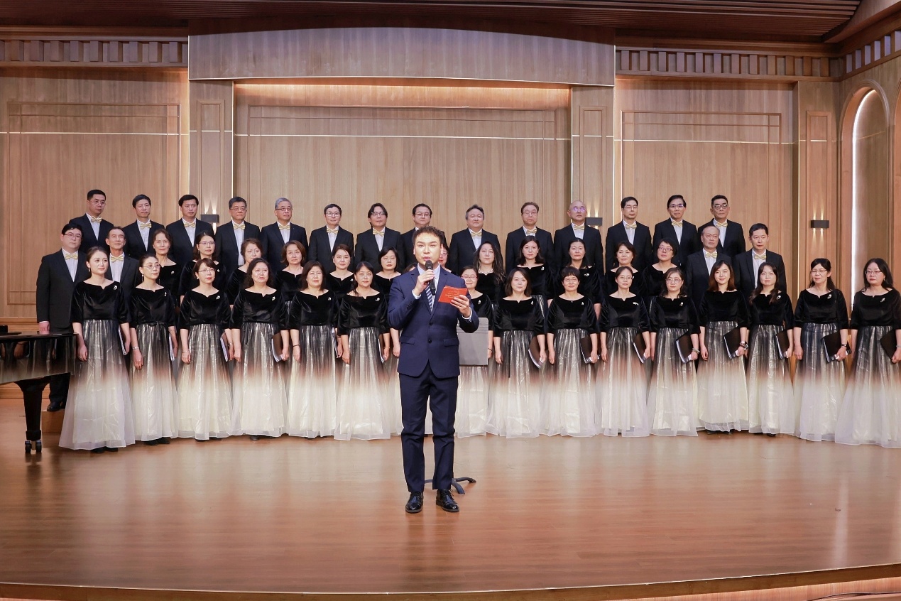 合唱团成立于2020年9月,由原上海理工大学校长丁晓东担任团长,常任指挥方勇执棒。五年来,合唱团深耕美育实践沃土,积极投身多项市级展演活动并斩获荣誉,已然成为上海教工文化建设领域的一张亮眼名片。音乐会现场,《遇见》《春日偶成》《萱草花》等经典曲目轮番上演,混声合唱、独唱、二重唱等多元艺术形式交替呈现。既有融合传统戏韵与现代合唱之美的《流水恋歌》,也有饱含家国情怀的《如愿》,充分展现出教育工作者深厚的艺术素养与昂扬向上的精神风貌。