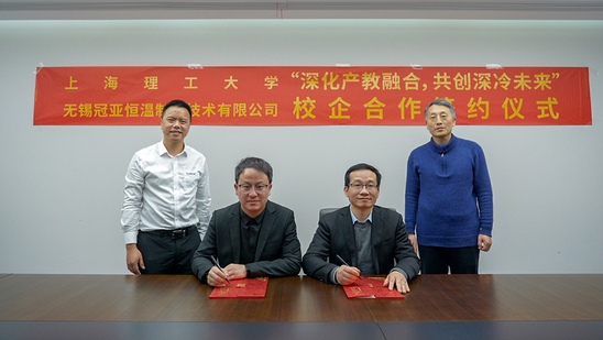 1月21日上午,上理工能源与动力工程学院院长刘宝林率队,上海市碳中和制冷空调技术现代产业学院执行院长陈曦、产业学院秘书长盛健等一行前往无锡冠亚恒温制冷技术有限公司,举行校企合作签约及揭牌仪式。无锡冠亚恒温制冷技术有限公司总经理颜厥枝、技术总监仝高强及相关业务负责人出席了本次活动。