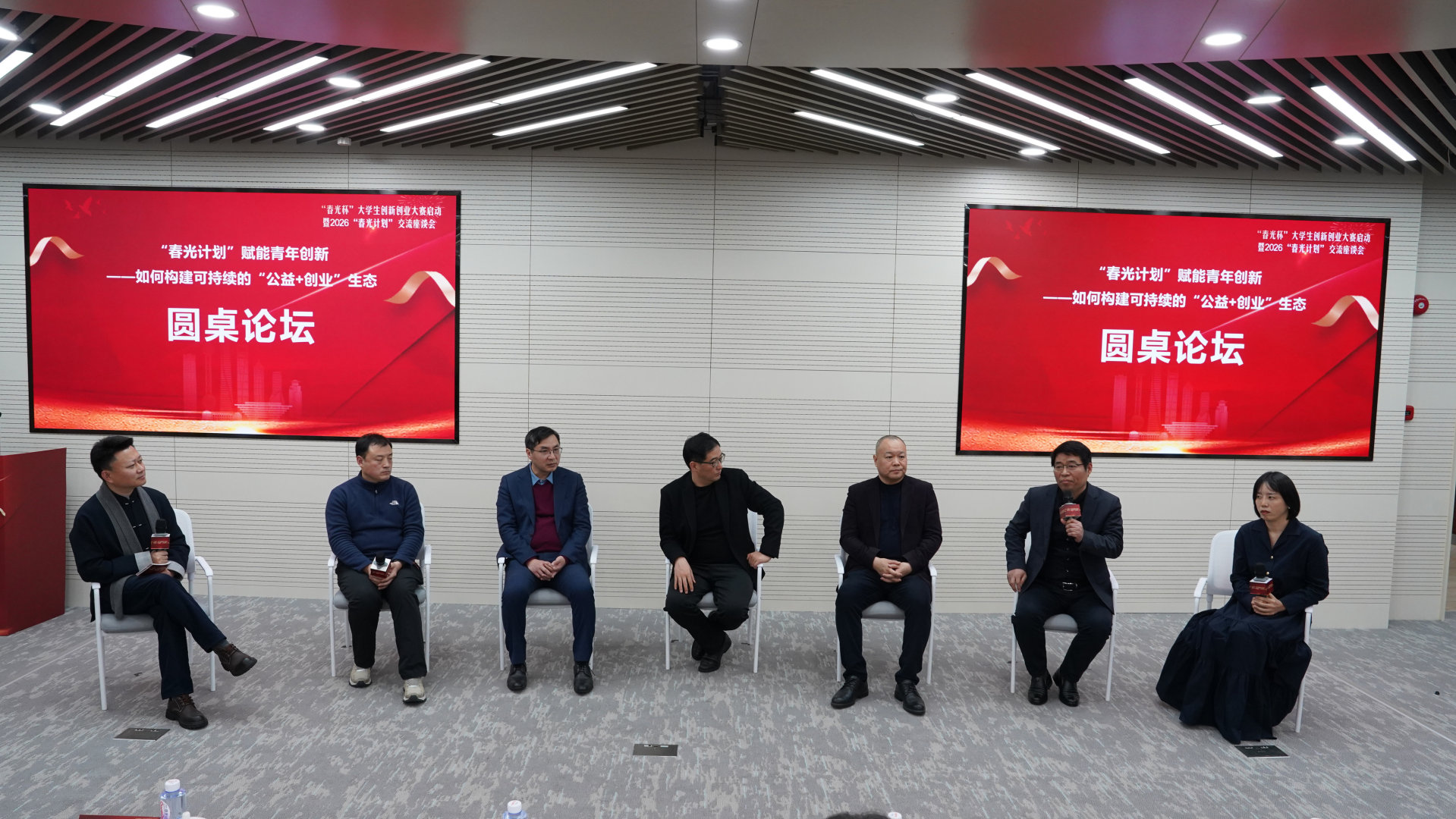 第一场圆桌论坛以“‘春光计划’赋能青年创新——构建可持续的‘公益+创业’生态”为主题,由复旦大学社会学研究中心研究员孔云中主持。同济大学经济与管理学院专业学位中心招生主管孔祥星、上海水成科技股份有限公司董事长李少华、中国民办教育协会高中分会副理事长余慧峰、上海昂煜电力市政建设集团有限公司董事长朱益、上海交大EMBA课程教授宋述东、复旦大学博士生导师唐明燕等嘉宾围绕如何整合政府、高校、企业与社会组织资源,打造多方共赢、自我造血的公益创业生态展开深入探讨。嘉宾们一致认为,“春光计划”应以机制创新为核心,通过项目筛选、能力建设、资本链接与政策协同,形成“扶上马、送一程、伴全程”的全周期支持链条,真正实现从“输血”到“造血”的转变。