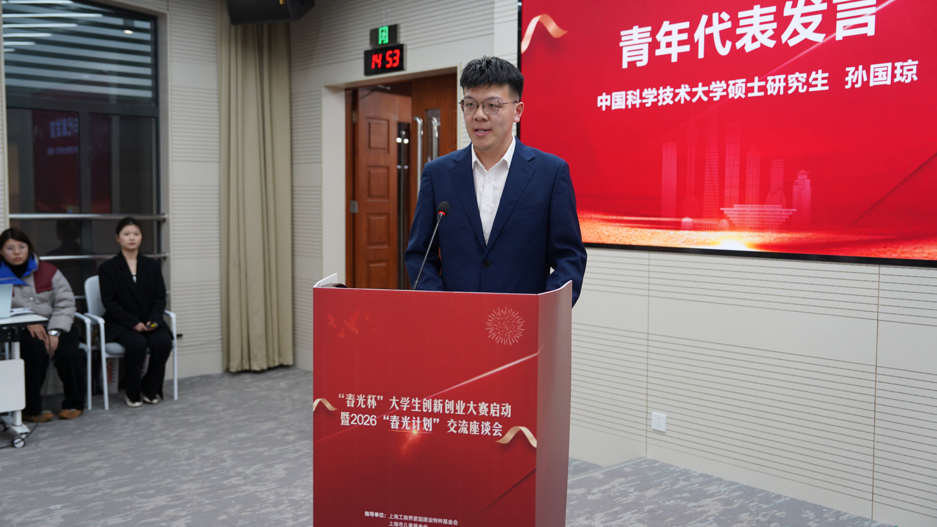 中国科学技术大学硕士研究生孙国琼作为青年代表发言,分享自身在科研与创业实践中的思考与感悟,展现了新时代青年的责任担当与行动力。