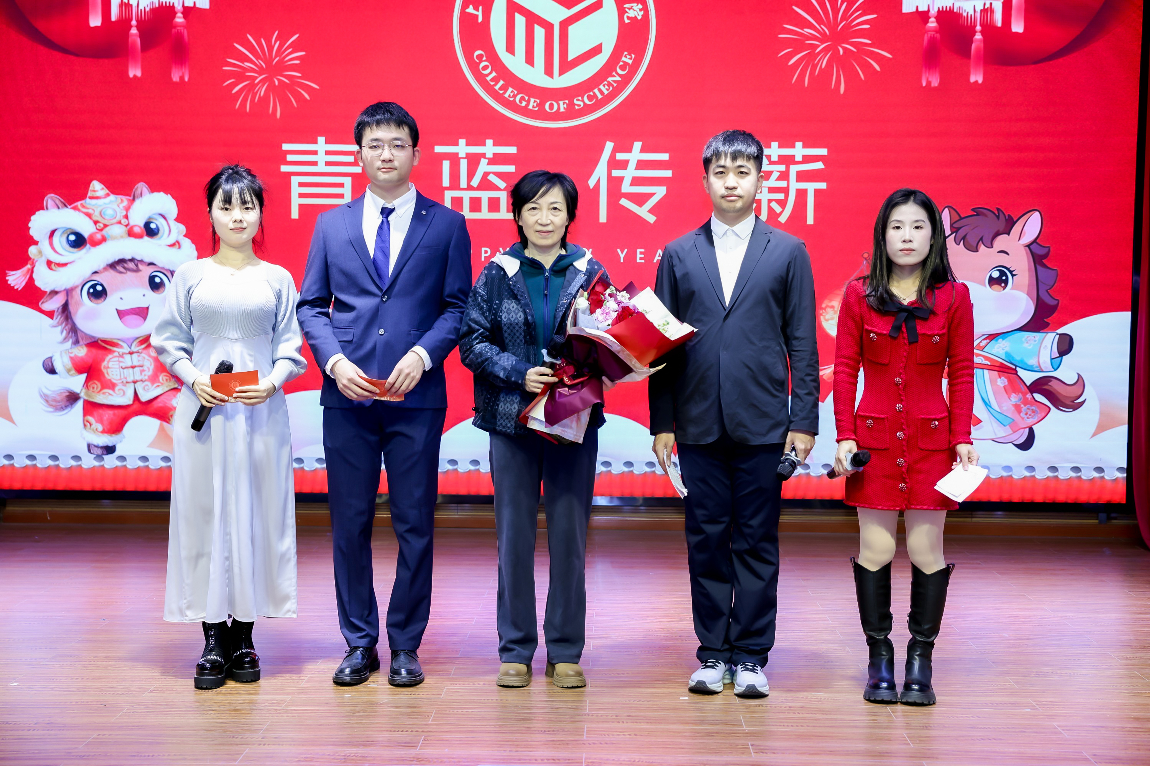 联欢会特别设置荣休教师致敬环节,成为全场最动人的篇章之一。新进教师代表手捧鲜花,向王丽军老师致以最崇高的敬意,感谢她数十年如一日深耕讲台、潜心育人,为学院发展倾注心血与汗水。这一温馨举动,不仅是对荣休教师奉献精神的致敬,更传承了理学人“薪火相传、接续奋斗”的责任与担当,让教育的温度在代代相传中延续。
