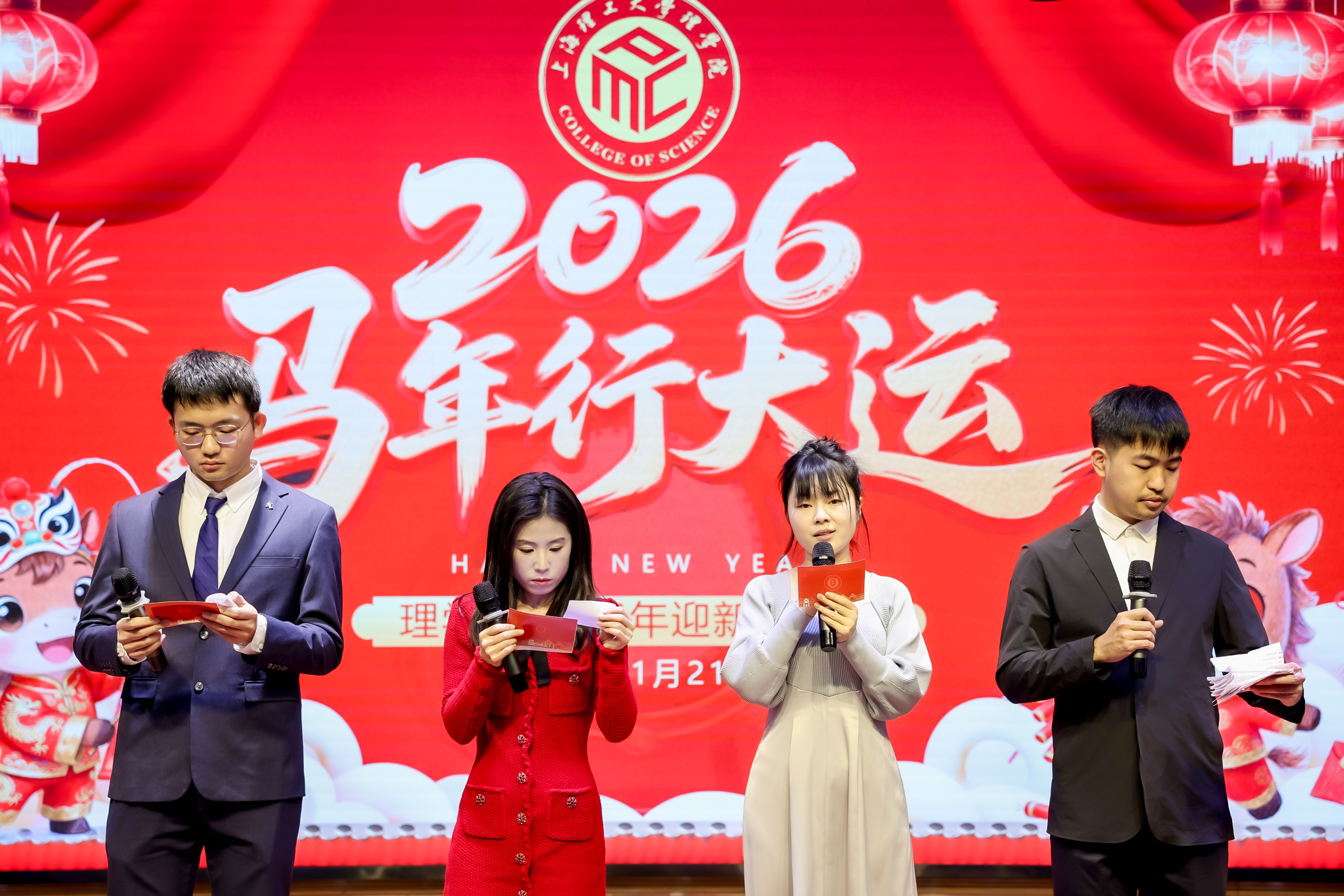 腊梅凝香辞旧岁,骏马踏春启新程。1月21日下午,理学院2026年迎新联欢会在教工之家二楼成功举办。理学院党政领导班子成员,长白新村街道商会党总支书记姚刚、秘书长奚晨洁,校友会代表葛文苑、赵春艳等嘉宾齐聚一堂,与学院教职工们围坐畅谈,共忆往昔奋进岁月,共迎丙午马年新春佳节,现场暖意融融、笑语盈庭。联欢会由青年教师杨倩、高琼、刘晋榕、周鑫晨主持。