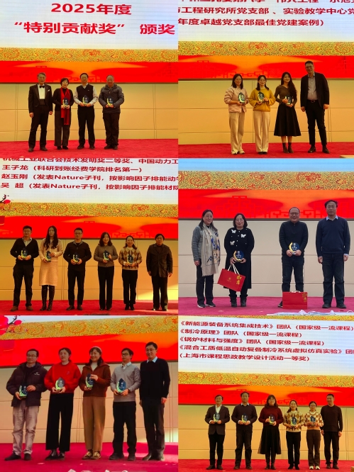 为表彰先进、树立典型,活动中颁发“特别贡献奖”、“党建贡献奖”及“教学贡献奖”等个人及团队奖项。黄典贵、金晶、章立新等老师凭借在学科建设、青年教师指导及工会工作中的突出贡献受到表彰;崔国民、武卫东、杨荟楠、盛健等教学团队及王秋麟老师因卓越的教学探索获此荣誉。苏明旭副院长、杨杰副院长、钱海燕副书记分别为获得“科研贡献奖”、“服务贡献奖”及“育人贡献奖”的老师颁奖。窦玉海、李凌、崔巍等一大批科研骨干,陈曦、姜颖杰等管理服务人员,以及田雅芬、高鹏等育人先锋接受了全院师生的致敬。此外,学院工会主席魏燕也对一年来默默奉献的工会积极分子和优秀工会工作者进行了表彰,并感谢了全院教师对工会活动的支持。活动特别设置致敬环节,向服务十年整、二十年整的教师们以及2025年光荣退休的陶乐仁、祁影霞老师献花。