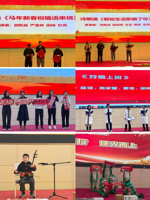 现场节目精彩纷呈,气氛热烈。能材院、储能所及制冷所教师代表带来的舞蹈《蛙!贵人来了!》活力四射,瞬间点燃了全场热情;“能动二代”高海棋小朋友的二胡独奏《小星星》天真烂漫,展现了教职工子女的风采。热工所与能材院教师带来的方言诗朗诵《假如生活欺骗了你》,用五湖四海的乡音传递了深厚情怀;空天所与热能所“双嘉组合”赵嘉毅、陈嘉琪老师献唱《直到世界的尽头》,激昂的旋律唱出了科研人探索未知的执着。新进教师们带来的《马年新春祝福语串烧》和实验中心老师们自编自演的节目《我爱上班》,以幽默暖心的方式道出了对工作的热爱与坚守。主持人李铭哲老师以一首民谣《你的姑娘》,深情讴歌了前辈们扎根三尺讲台、无私奉献的教育情怀,令在场观众动容。值得一提的是,刘宝林院长带来的萨克斯独奏《天路》婉转悠扬的乐声,不仅展现了艺术修养,更致敬了每一段奋斗的征程,赢得了现场经久不息的掌声。