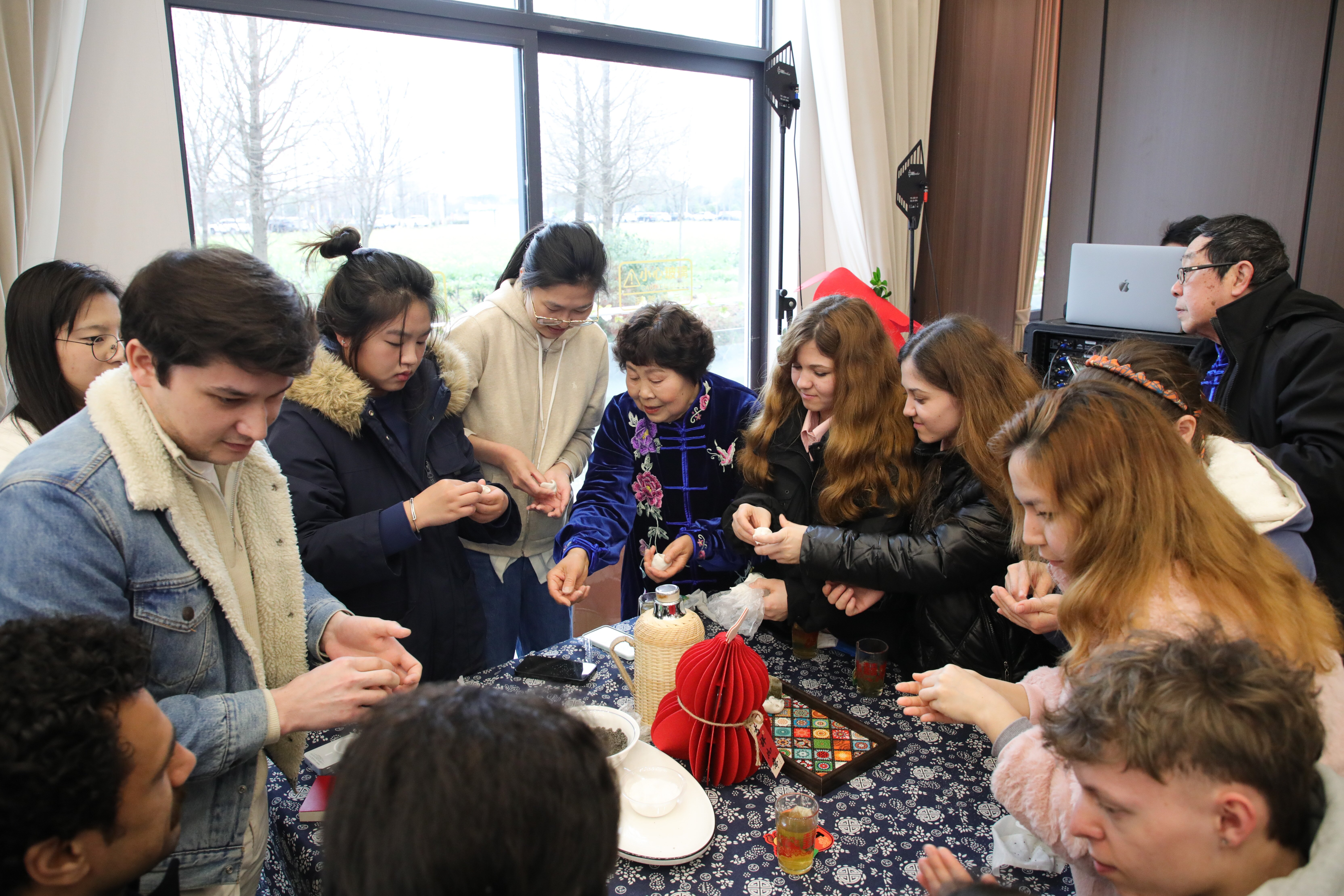 随后,留学生们走进热闹的元宵节主题集市参与特色民俗体验,观赏集市旁的诗会表演感受中华传统文化魅力,之后便开启了包汤圆体验与评鉴环节。留学生们在民俗师傅指导下体验包汤圆,体验结束后品尝师傅制作的汤圆,并化身“美食评委”对汤圆进行点评,在互动中加深对元宵“团圆”寓意的理解。