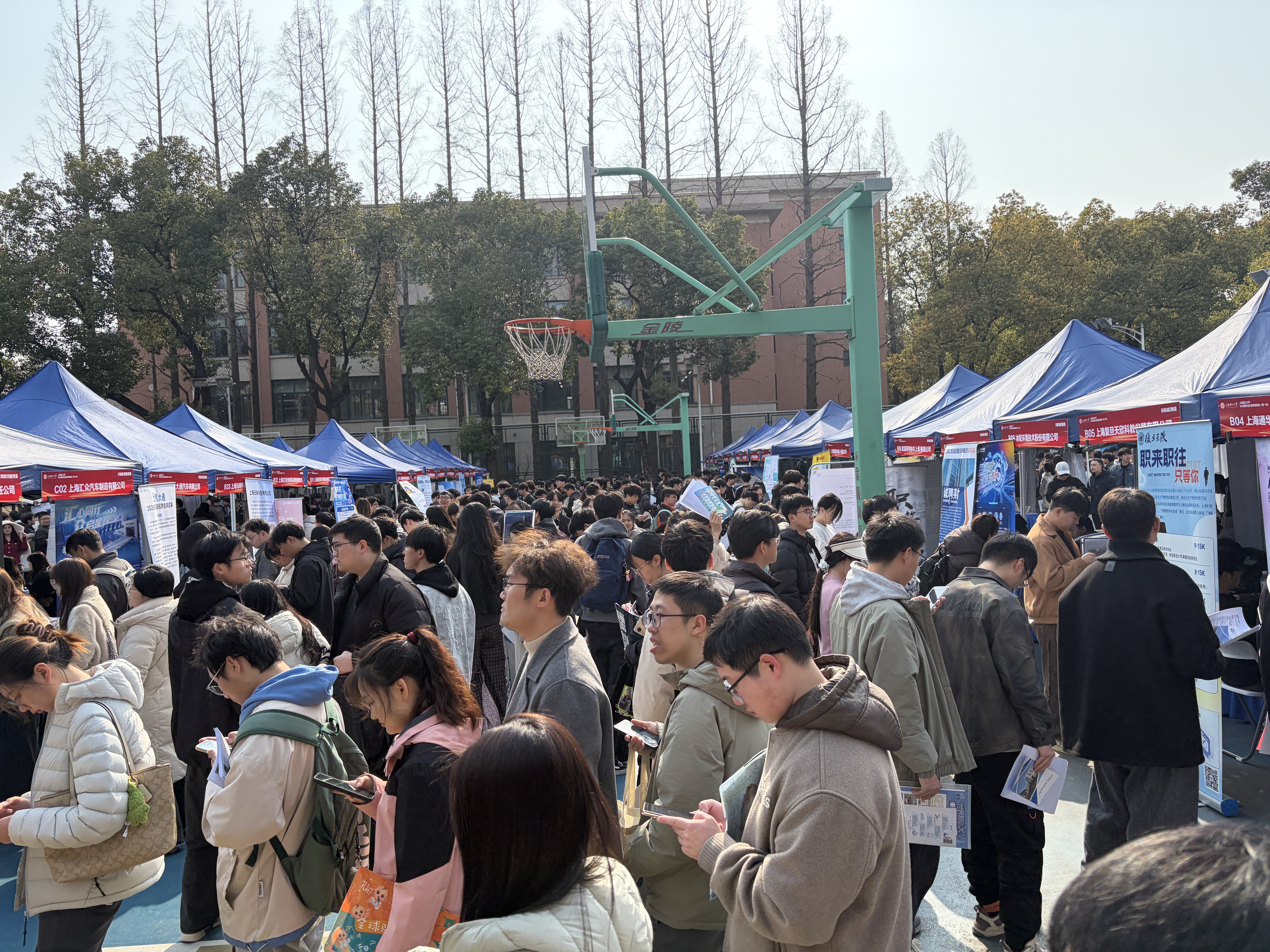 为深入贯彻落实教育部“春季促就业攻坚行动”部署,搭建校企精准对接桥梁,3月11日-13日,上海理工大学2026届毕业生春季首场招聘会在学校灯光篮球场顺利举办。本次招聘会规模宏大、覆盖面广、针对性强,汇聚380余家优质用人单位,释放2000个优质岗位,全校4500人次毕业生到场求职。校党委副书记、副校长刘德强到现场调研了解用人单位需求和学生求职情况,各学院相关负责人、毕业班辅导员也到现场主动对接用人单位,推荐优秀毕业生。