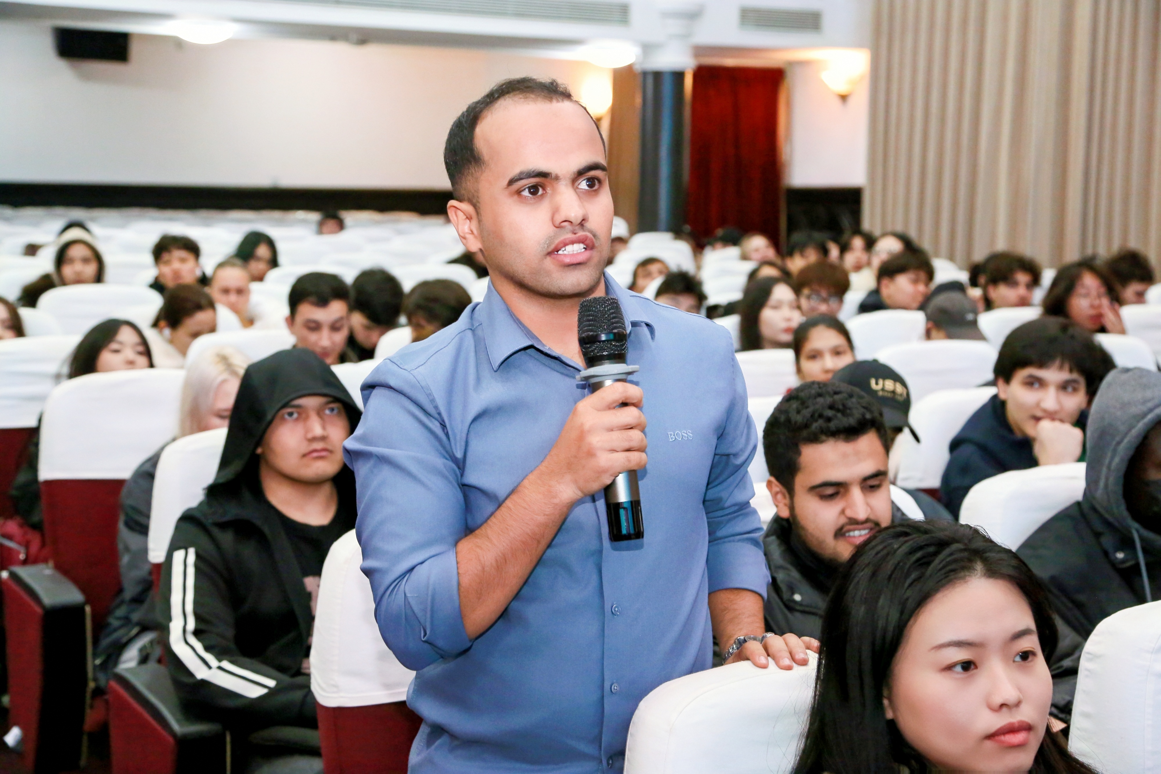 留学生们踊跃提问,积极与教授互动交流。针对中国推进对外开放为留学生提供的实习和发展机遇,周教授建议留学生们可以到中国企业实习和工作,同时主动与中国同学交朋友,并多阅读重要时政理论文章,以便更好地了解中国的发展。