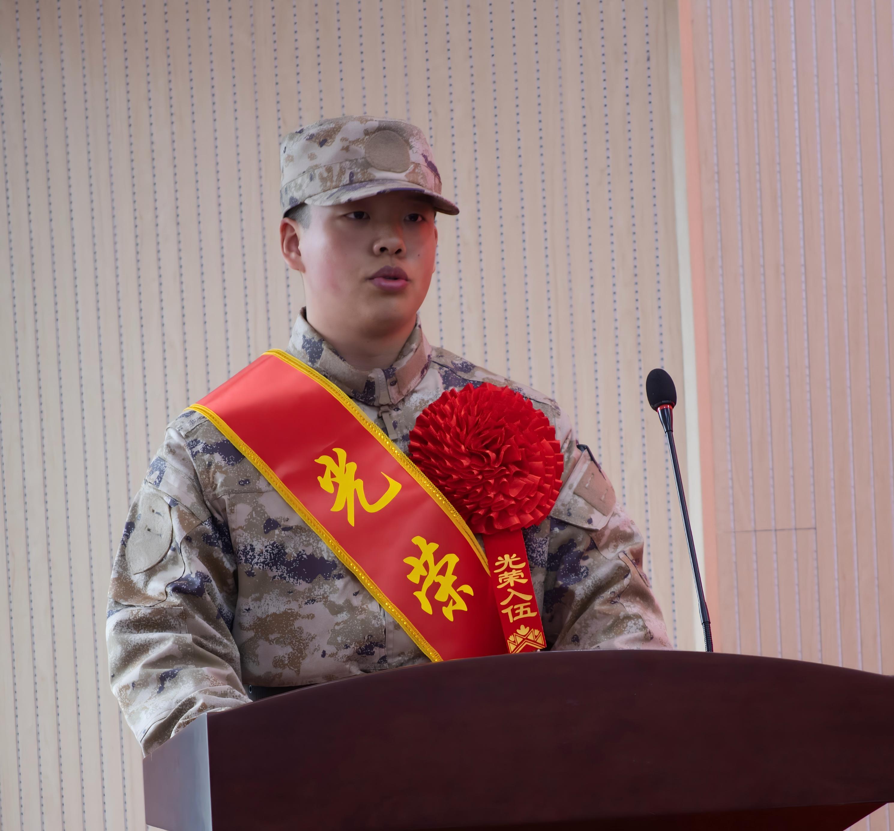 身披戎装、意气风发的新兵们目光坚定、精神抖擞,怀揣着对军营的憧憬和对祖国的忠诚,整装待发。我校优秀退役大学生士兵彭威深情寄语新兵:“军营是淬炼青春的大熔炉,愿你们珍惜这段时光,在挑战中成长、在汗水中收获,带着初心与勇气乘风破浪,用青春与担当书写属于自己的军旅荣光!”