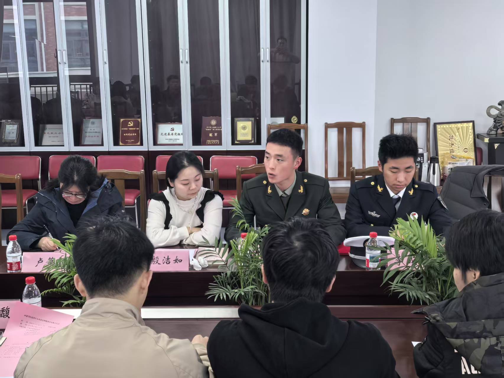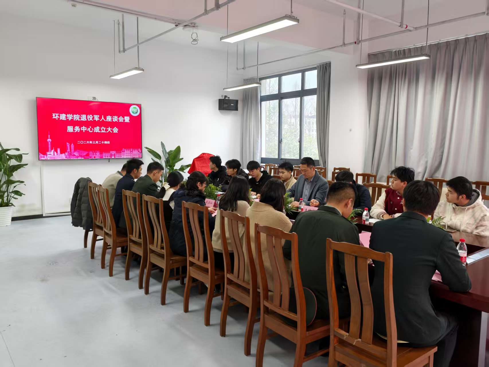 为深入贯彻落实国家关于退役军人服务保障工作的决策部署,进一步凝聚退役学生力量、传承军人优良作风,3月24日上午,环境与建筑学院举行退役大学生服务中心成立大会。校武装部副部长曹桂馥、国防教育办公室主任朱垌烨到院指导,学院党委书记卢萧、党委副书记周蓉、学院相关教师代表及全体在校退役学生齐聚一堂,共同见证学院退役大学生服务工作的全新起点,会议由学院专武负责人王翀主持。