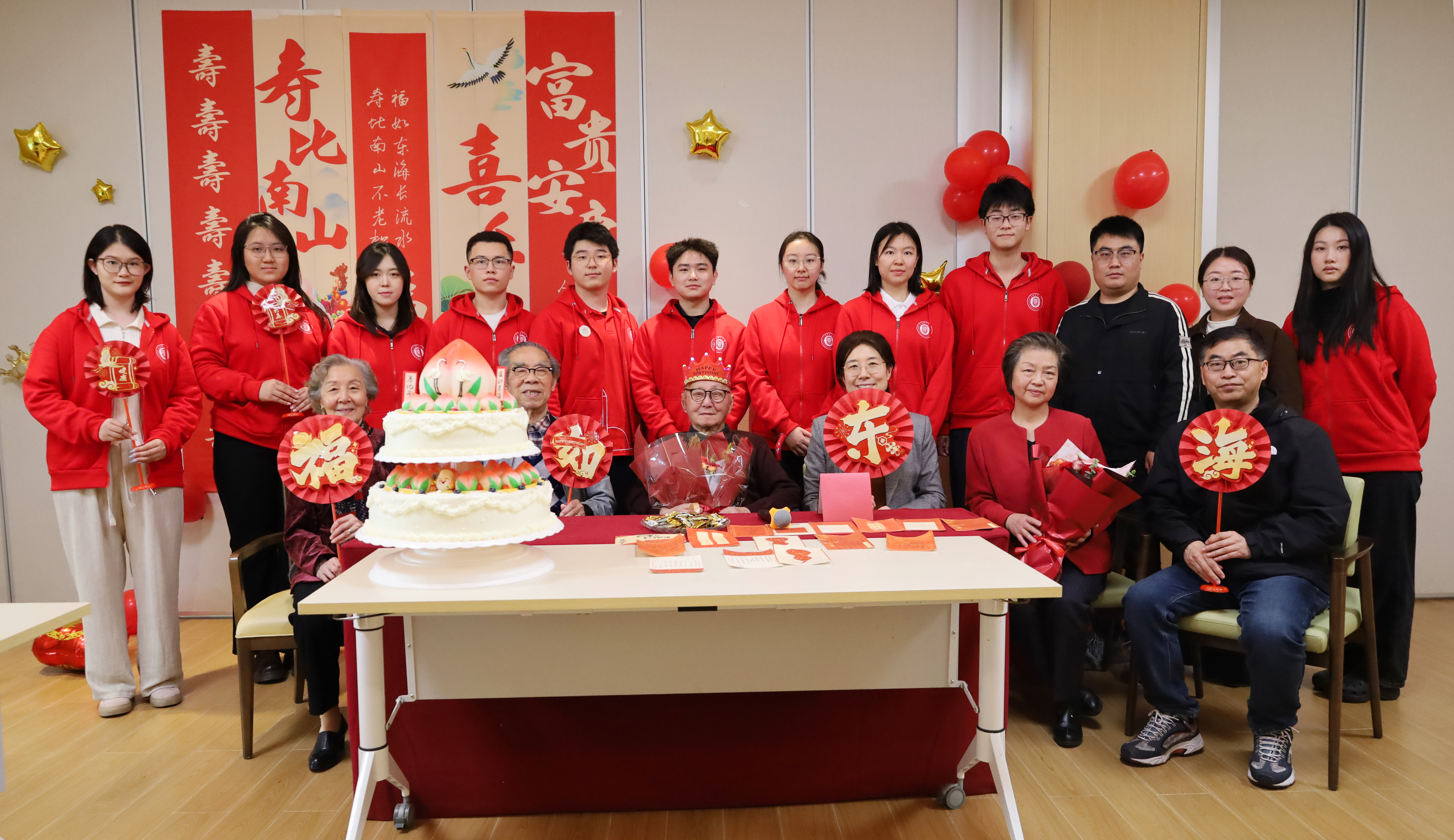 上午,大家齐赴松江拜访沪江大学首任华人校长刘湛恩次子、沪江校友刘光华先生。刘光华先生精神矍铄,结合自身经历,深情回顾了自己在沪江大学生活、读书、革命的经历,以及父亲刘湛恩牺牲时的历史细节,也分享了毕业后在家庭、工作中的成长与坚守,言语间满是对母校的眷恋与对青年一代的期许。刘光华先生的生动讲述,让在场每位讲解员都深受触动;面对面聆听老校友分享沪江红色事迹,让讲解员深刻领悟到了学校红色基因的精神力量与传承使命。恰逢刘光华先生百岁生日,大家共同为他庆祝百岁寿辰。讲解员手捧精心制作的生日贺卡表达了最诚挚的祝福,齐声唱响生日快乐歌,温暖的歌声萦绕在现场每个角落。
