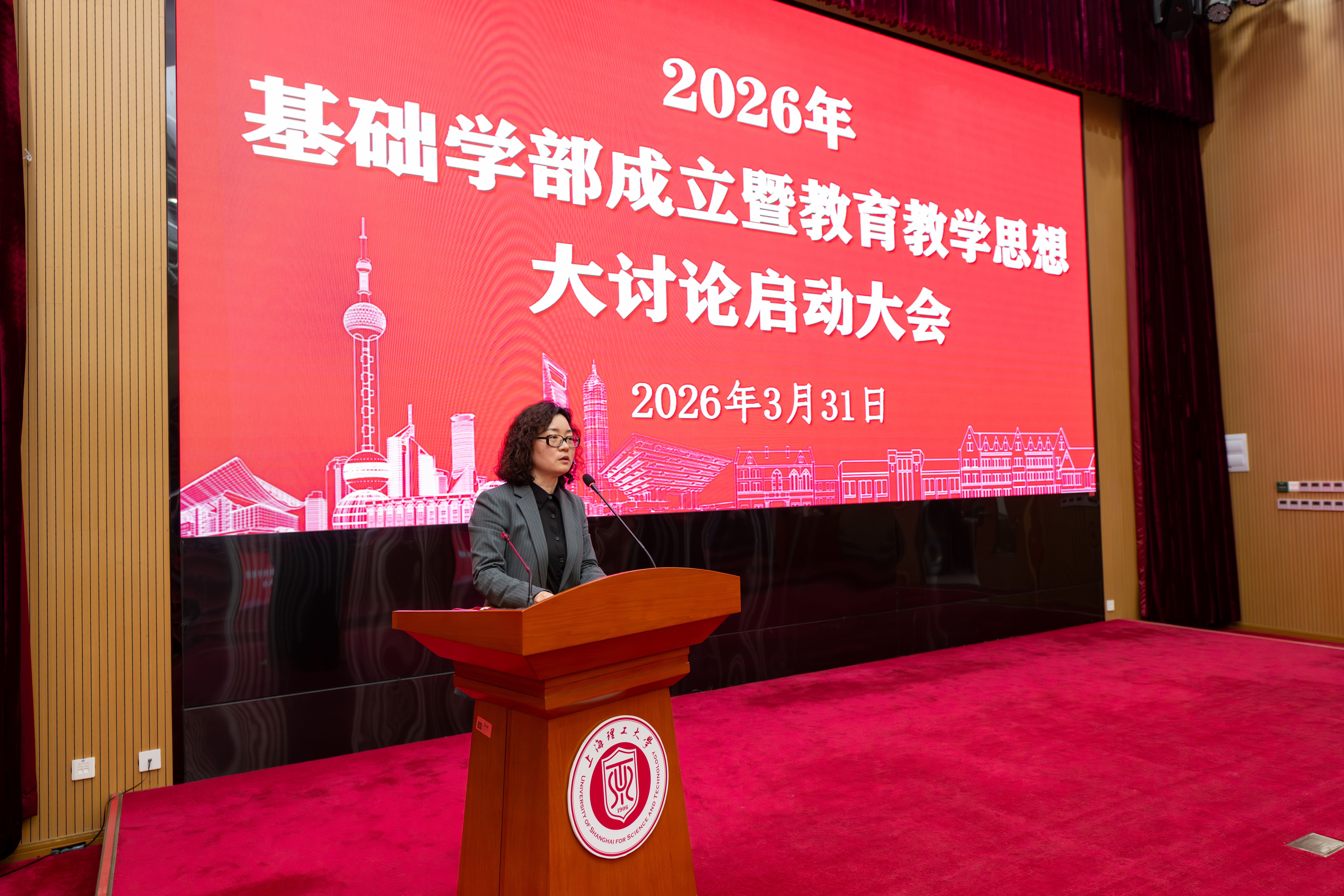 3月31日下午,基础学部成立暨教育教学思想大讨论启动大会在国合楼三楼报告厅召开。校党委常委、副校长张众,教务处副处长张鲁潮,研究生院挂职副院长黄蓓佳,基础学部党政班子全体成员及学部全体教职工齐聚一堂,以教育教学思想大讨论为重要契机,凝聚发展共识、明确育人使命,共同擘画基础学部建设发展的崭新蓝图。大会由基础学部党委书记李琴主持。