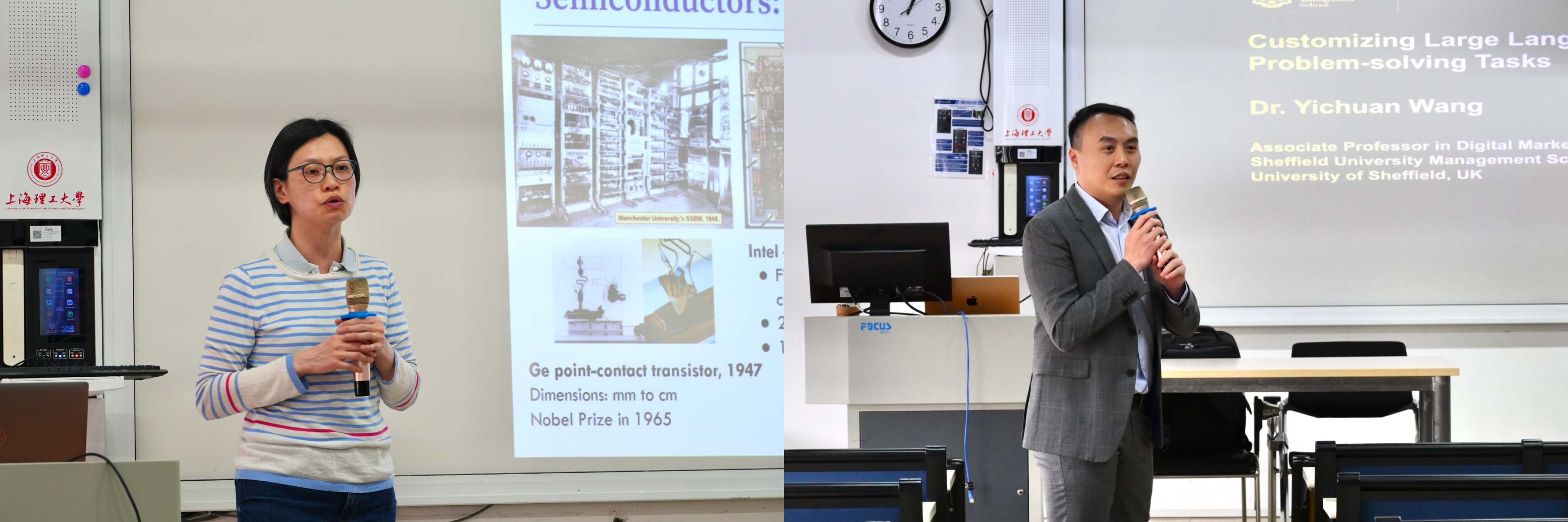 为拓宽学生国际视野,深入了解英国高校的前沿动态与校园生活,3月27日晚,谢菲尔德大学电气与电子工程学院Jo Shien Ng教授与管理学院Yichuan Wang博士来访上海理工大学中英国际学院,为近百名学子带来升学专题讲座,深入解读谢菲尔德大学学科设置、升学要求、奖学金政策及校园生活。