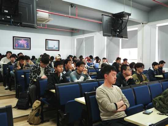 在互动问答环节,现场气氛热烈。同学们围绕专业选择、研究方向、申请流程及跨学科融合踊跃提问,两位嘉宾逐一耐心解答。一位机械设计制造及其自动化专业的学生表示:“这次讲座让我对工科在AI时代的应用前景有了更深刻理解,也坚定了继续深造的决心。”
