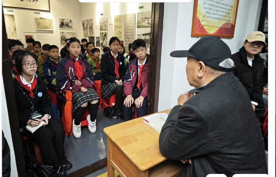“父亲不仅是一位医者,更是一名战士!”在浦东新区书院镇李雪舟烈士故居内,烈士之子李南华老先生向前来祭扫的大中小学生们讲述父亲的革命故事。