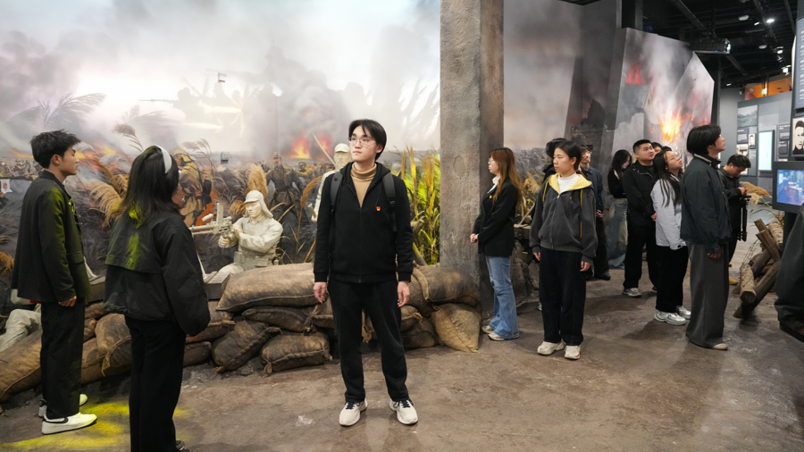 这堂课没有PPT,没有板书,学生们在全息成像、VR还原的硝烟中“走进”汇角战斗,在实物船舵前“目送”南渡勇士。上海电机学院材料学院学生党员付倩在沉浸体验后感慨道:“子弹轨迹仿佛从耳边掠过,让我真正懂了‘为有牺牲多壮志’的重量。”
